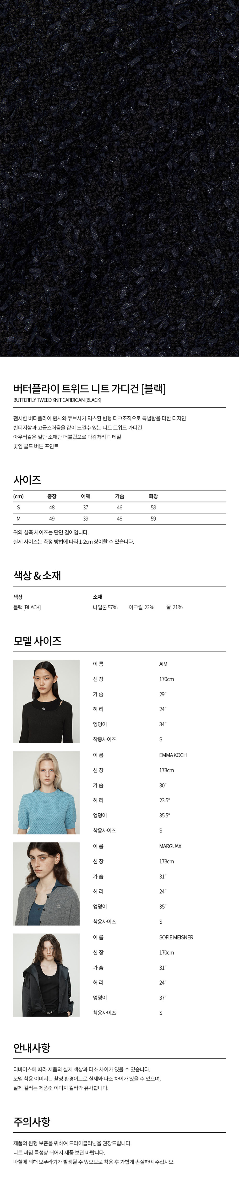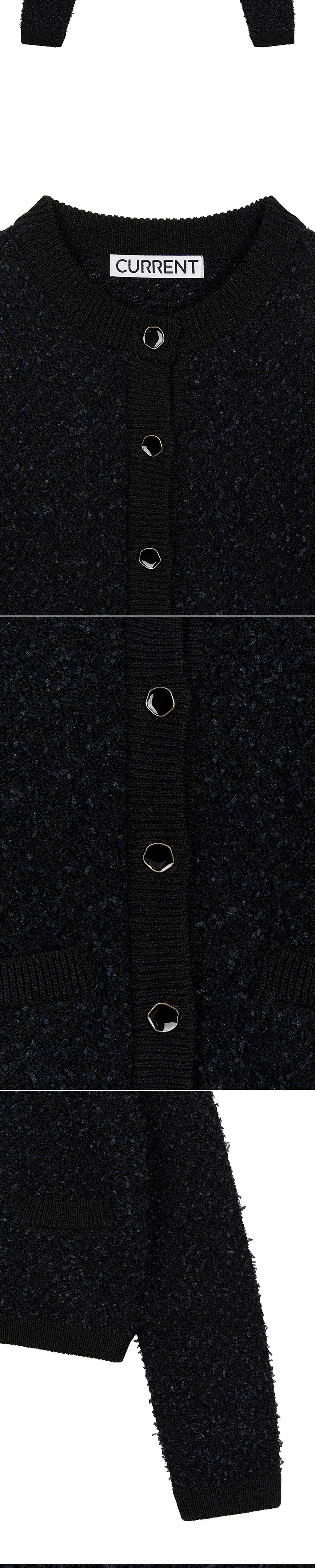 커렌트 버터플라이 트위드 니트 가디건 블랙