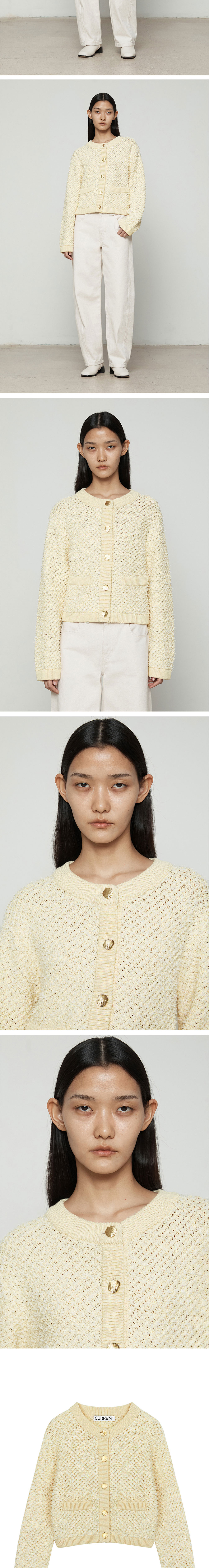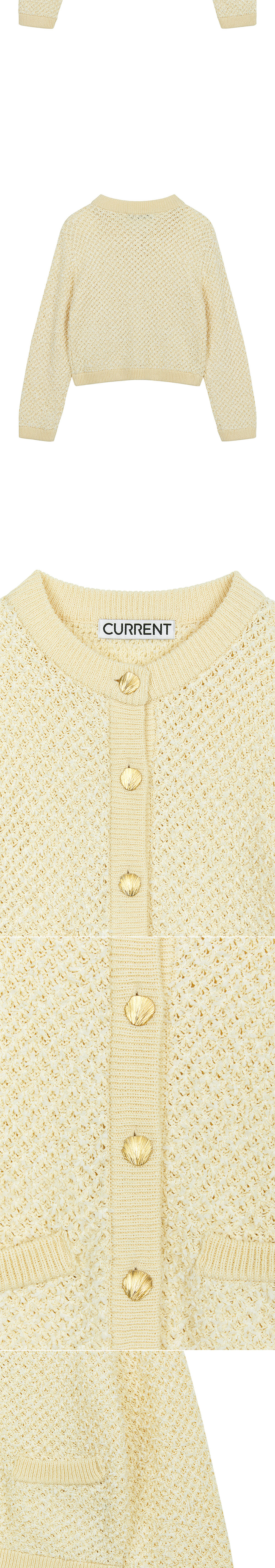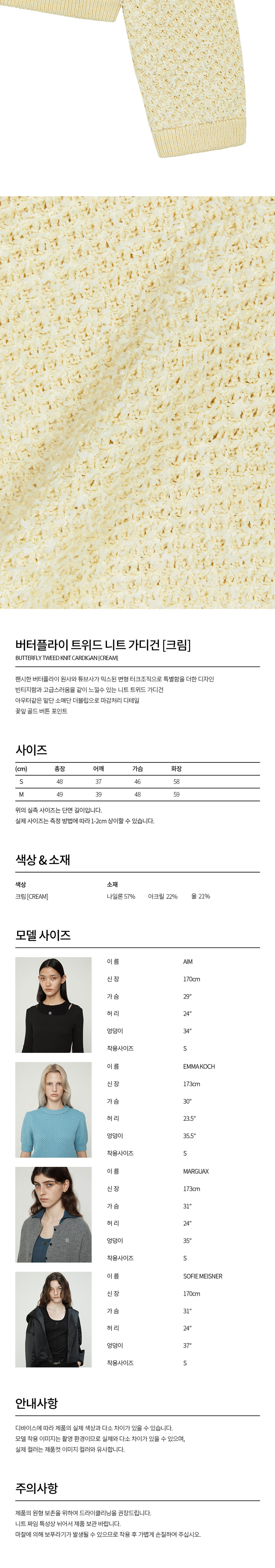 커렌트 버터플라이 트위드 니트 가디건 크림