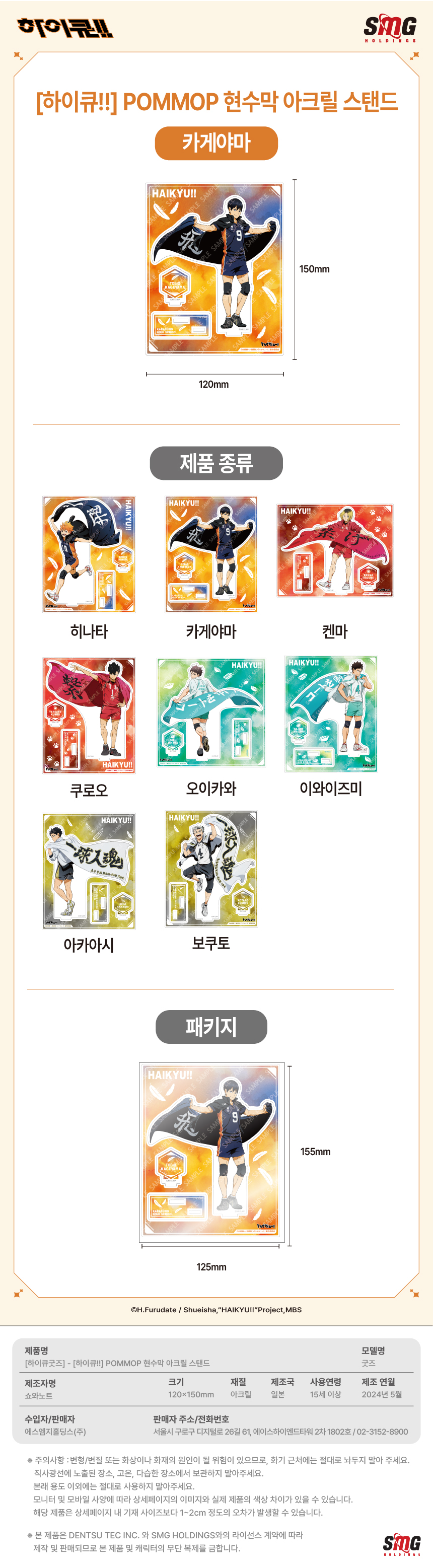하이큐 POMMOP 현수막 아크릴 스탠드 카게야마
