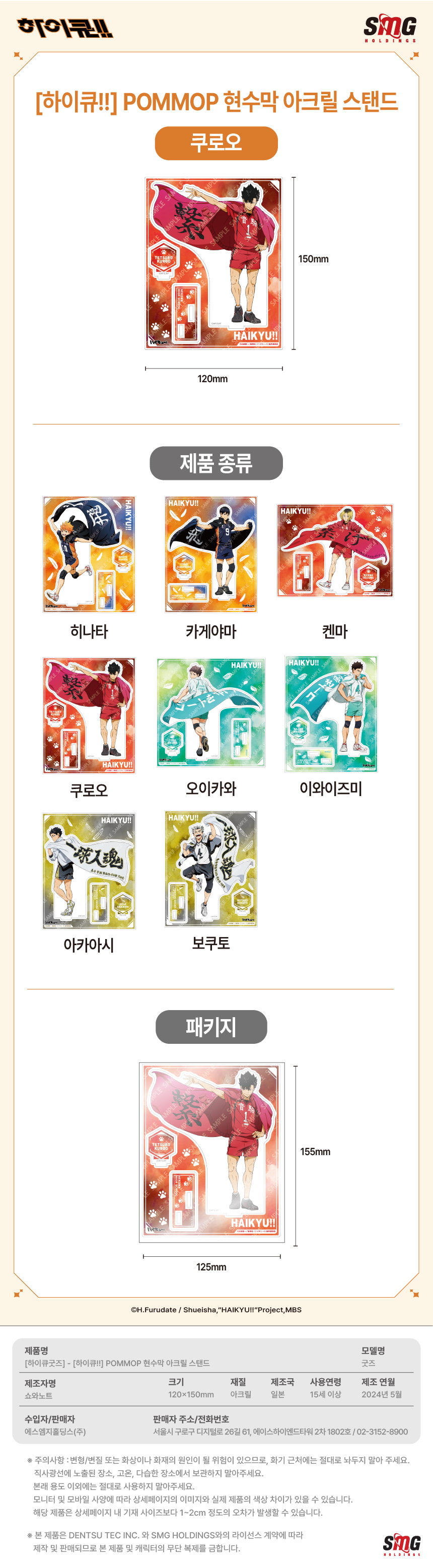하이큐 POMMOP 현수막 아크릴 스탠드 쿠로오