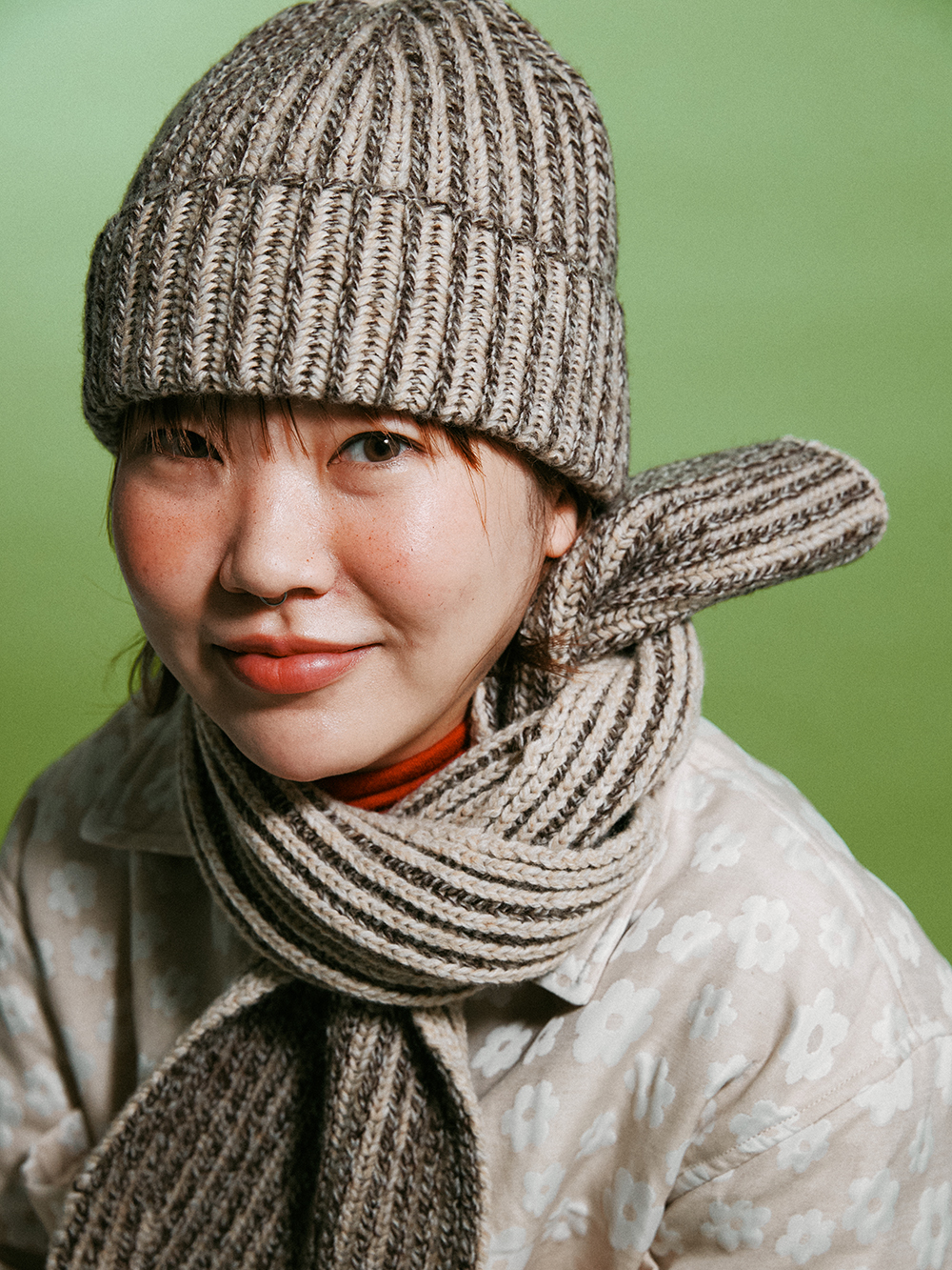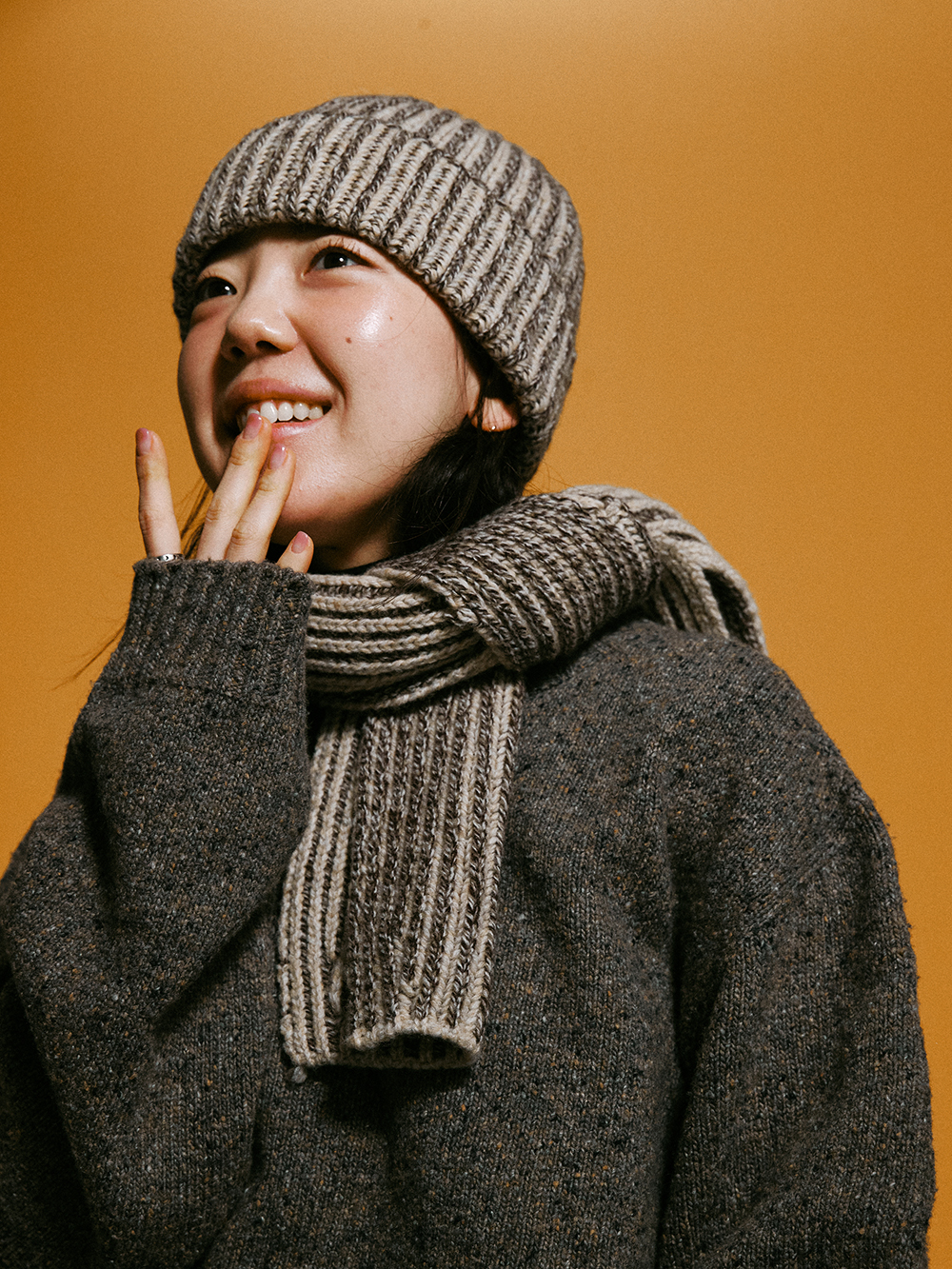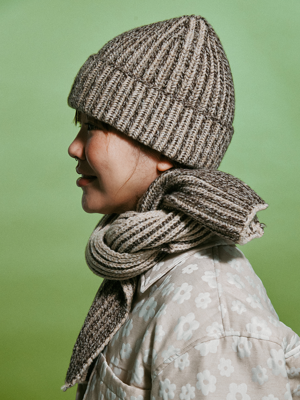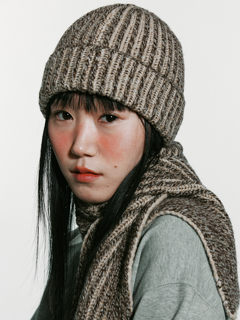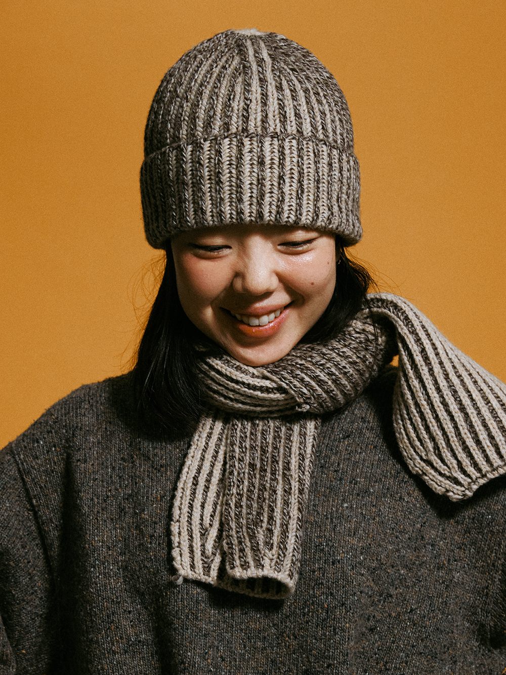 2024 WINTER ACC - 6개 색상의 컬러를 연사한 3G 니트비니 - 니쥬조직의 튼튼한 짜임 - WOOL 혼방의 보온성 - 접힘 부분의 데미지 디테일 - Made in korea +COLOR BROWN +CARE Dry cleaning