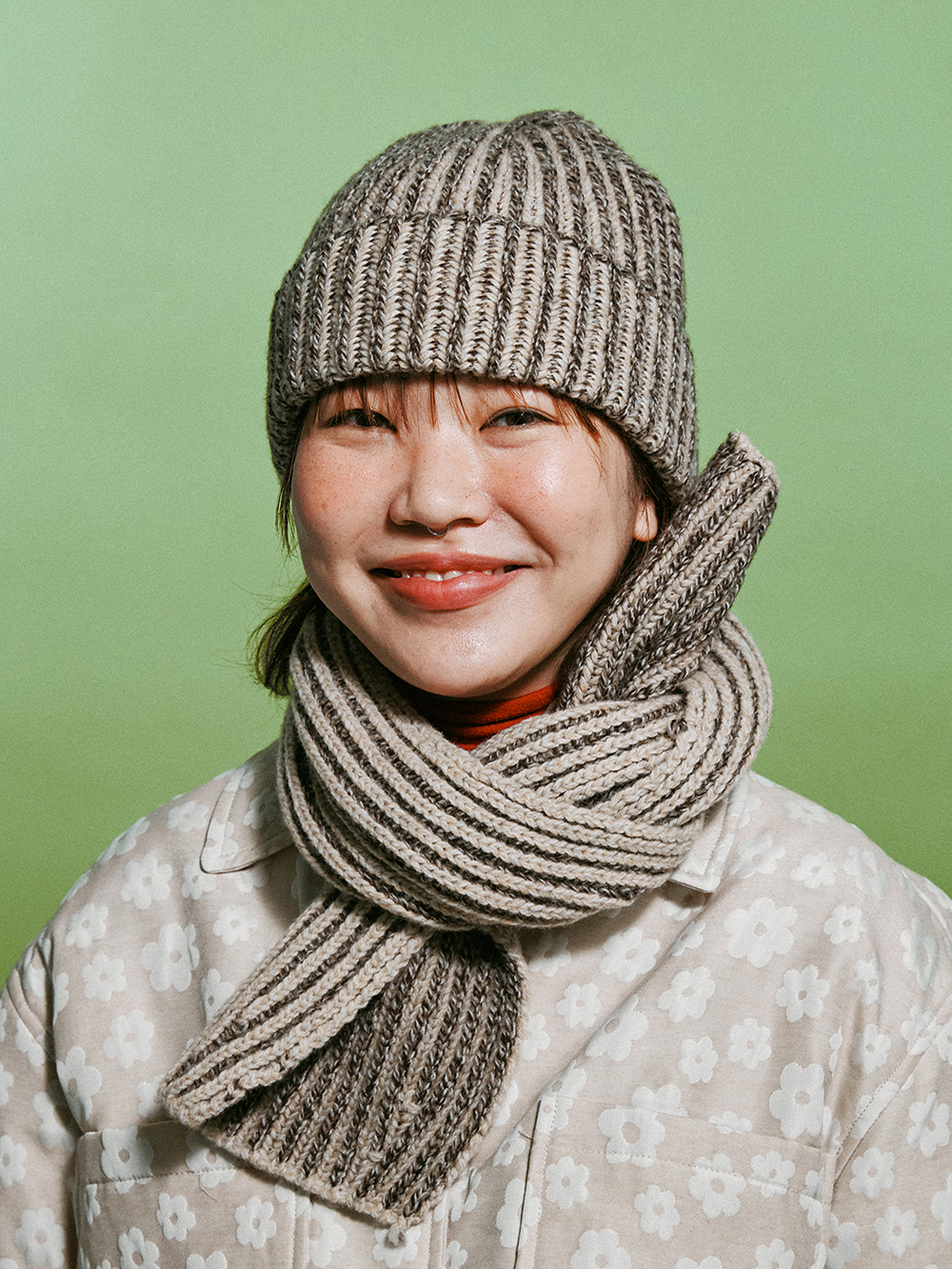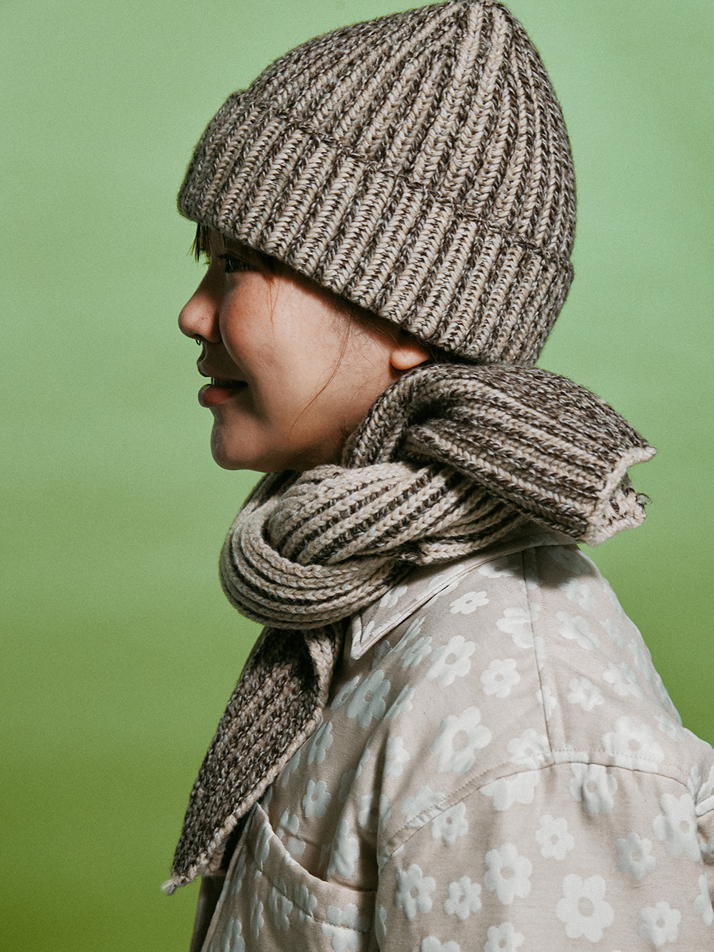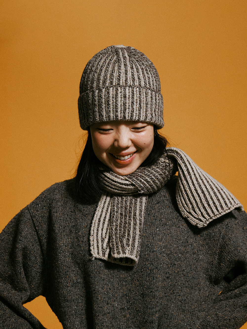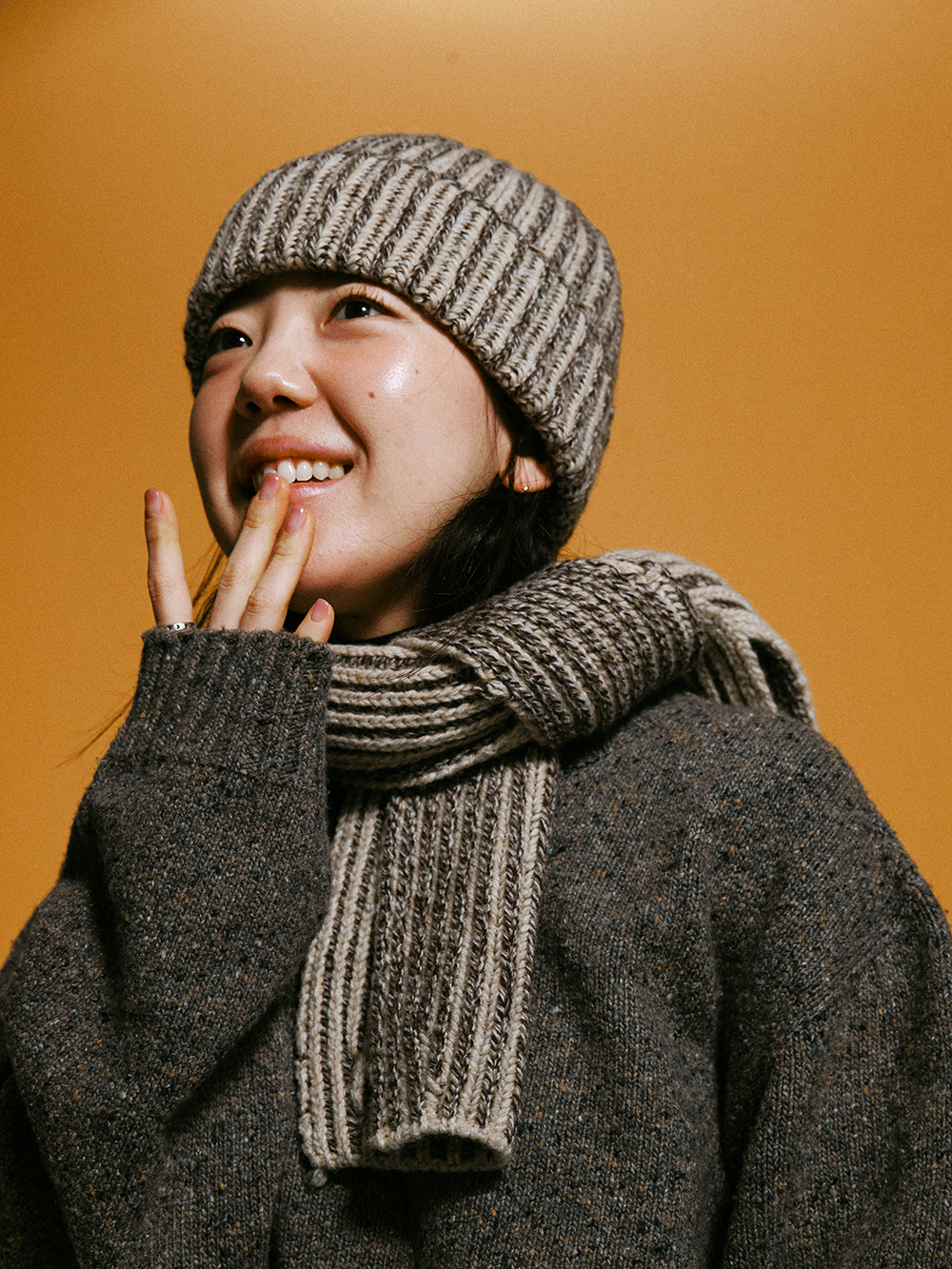 2024 WINTER ACC - 6개 색상의 컬러를 연사한 3G 니트머플러 - 니쥬조직의 튼튼한 짜임 - 전, 후면의 배색을 통한 리버시블 방식의 머플러 - 밑단 부분의 구멍 디테일 - WOOL 혼방의 보온성 - Made in korea +COLOR BROWN +CARE Dry cleaning