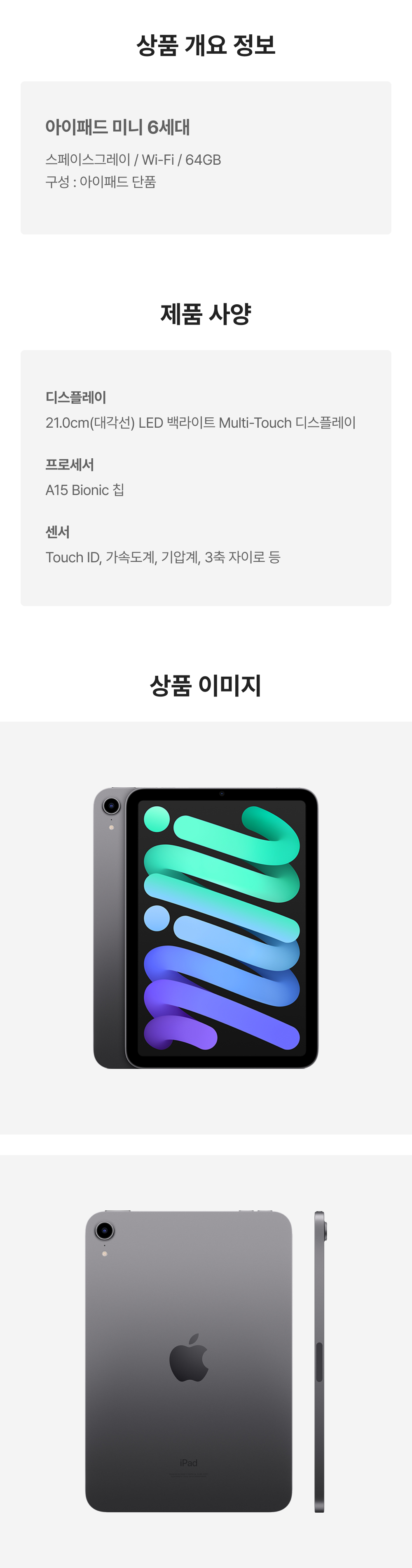 [S등급] 리퍼비시 아이패드 미니 6세대 wifi A15 Bionic 64기가 스페이스그레이