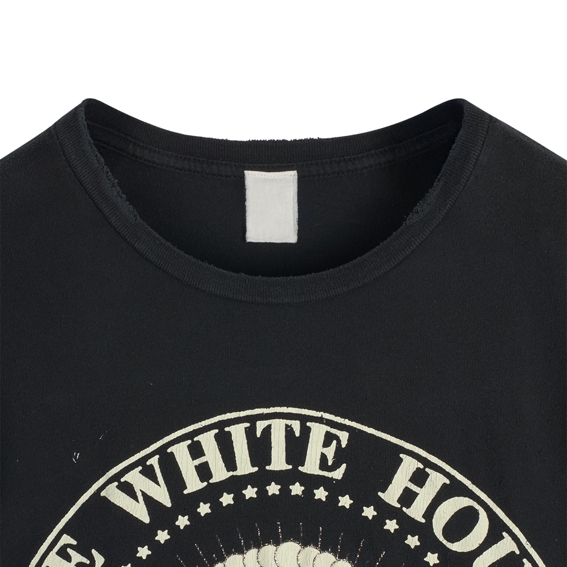 백악관을 검은색으로 칠한다는 그래픽이 빈지티하게 담긴 메이드원의 조지 클린턴입니다. - 빈티지 유니섹스 핏 - 짧은 소매 길이, 메이드원 특유의 코튼 소재, 그리고 블라인드 스티치 밑단 - LA에서 수작업 공정으로 제작