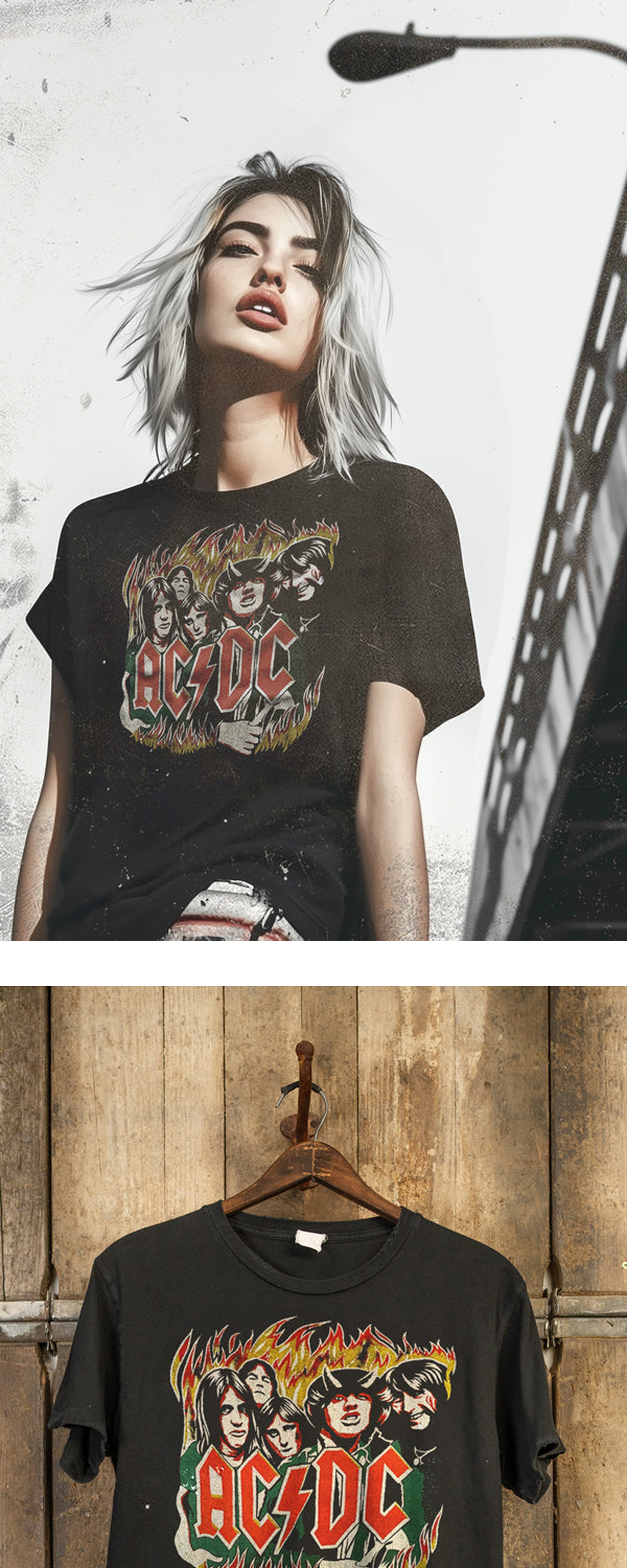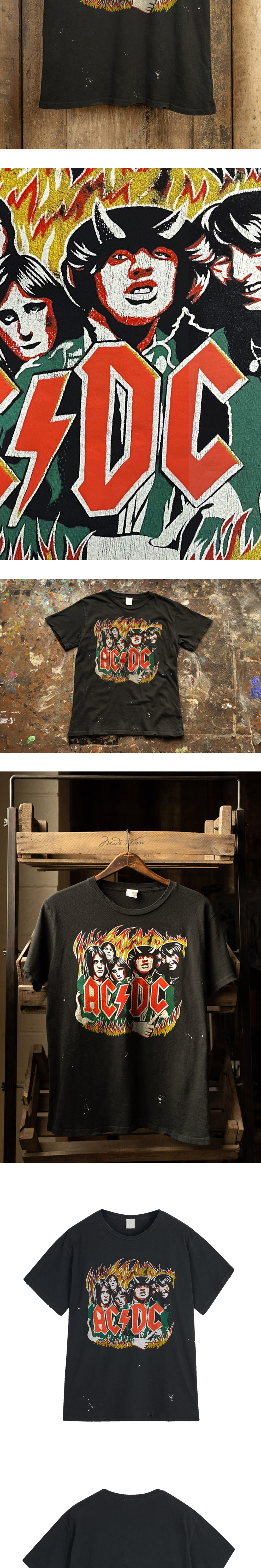 화염 속에서 격추되는 90년대 스타일, 메이드원의 AC/DC입니다. - 빈티지 유니섹스 핏 - 기존 클래식 크루 티셔츠에 비해 전통적인 소매 길이 - 시그니처 코튼과 블라인드 스티치 밑단