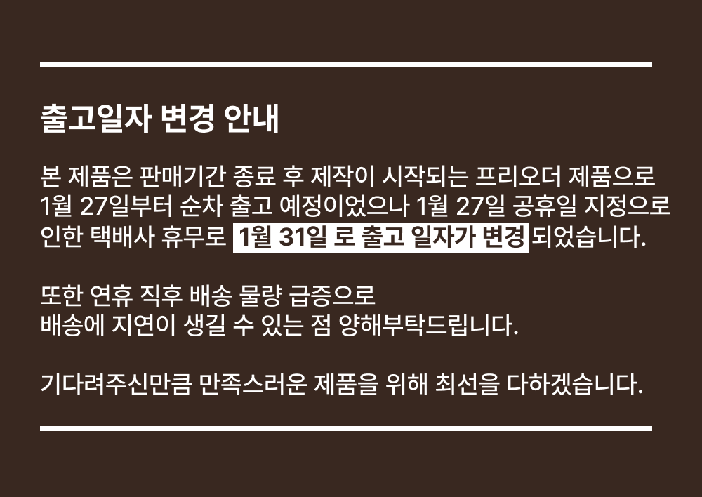 해당 상품은 예약배송건으로 1/31(금) 출고 예정 입니다.