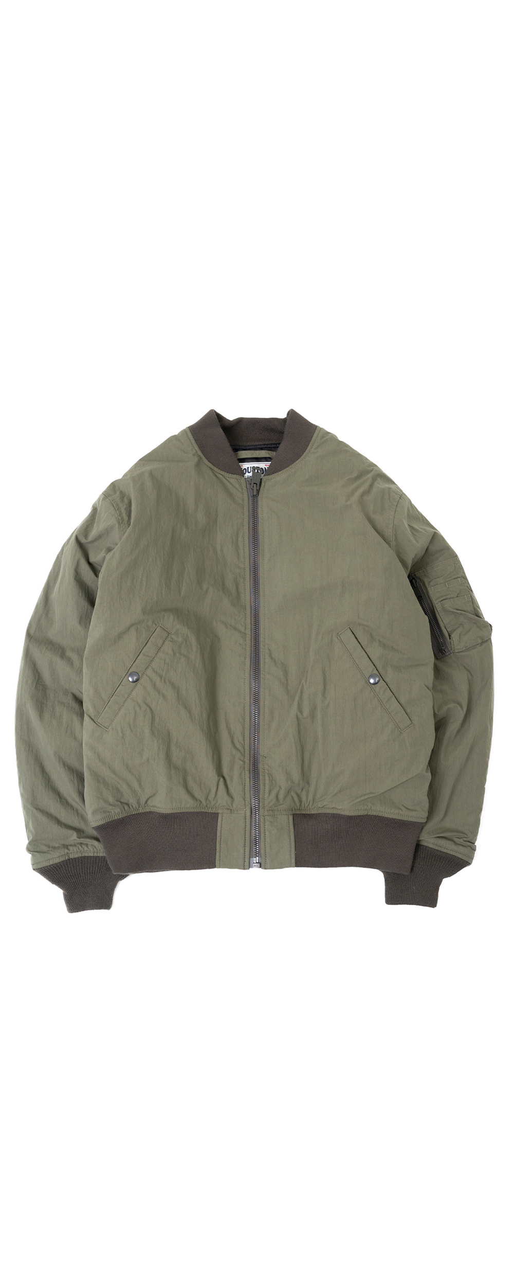 Houston Japan 51433 N/C Light MA-1 - Olive Drab 면 나일론 혼방의 와셔 원단을 사용하여 기존의 MA-1만큼 두껍지 않고 가벼운 MA-1 자켓입니다. 안감은 퀼팅을 사용하고, 품과 암 부분의 사이즈를 넉넉하게 제작하여 편하고 보온성이 좋은 자켓입니다. * Upper : Nylon 100% * Lining : Polyester 100% * Filling : Polyester 100% * 빛에 의한 제품의 색감 차이가 존재 할 수 있습니다. * Made in China