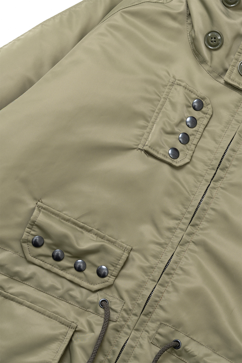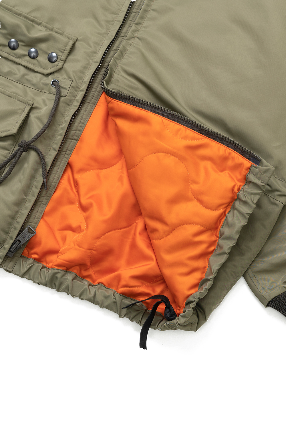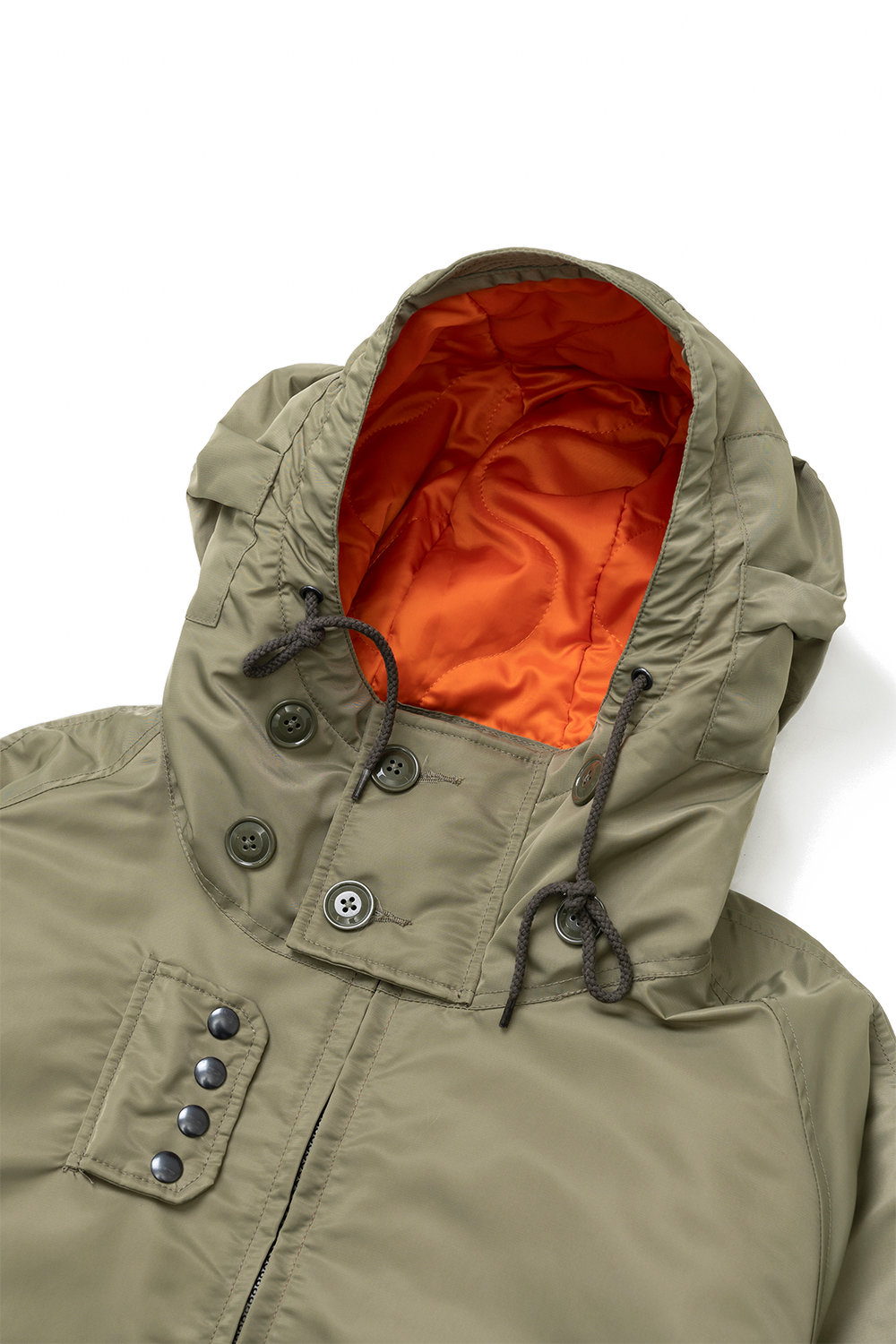 Houston Japan 51446 Nylon UK Smock Parka - Olive Drab 1950-90년대에 영국 해군에 지급되던 스모크 파카를 샘플링한 제품입니다. 오리지널 제품은 풀오버 타입이지만, 입고 벗기 쉬운 풀집업 타입으로 제작되었습니다. 허리부분 스트링으로 핏을 조절할 수 있습니다. * Upper : Nylon 100% * Lining : Polyester 100% * Filling : Polyester 100% * Lib : Acrylic 95% / Polyurethane 5% * 빛에 의한 제품의 색감 차이가 존재 할 수 있습니다. * Made in China