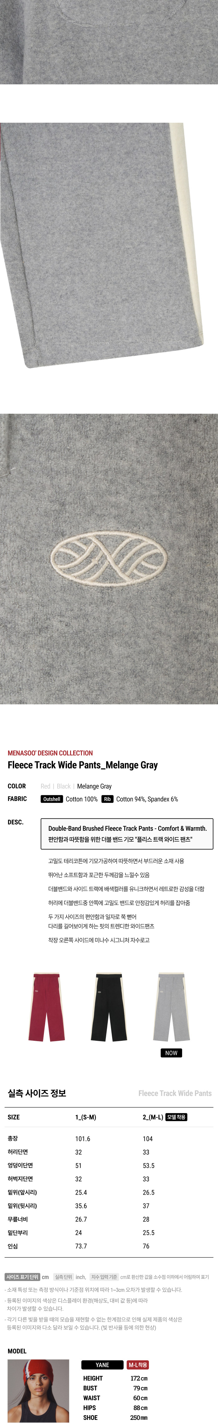 미나수 더블밴딩트랙 플리스 와이드팬츠 멜란지 그레이