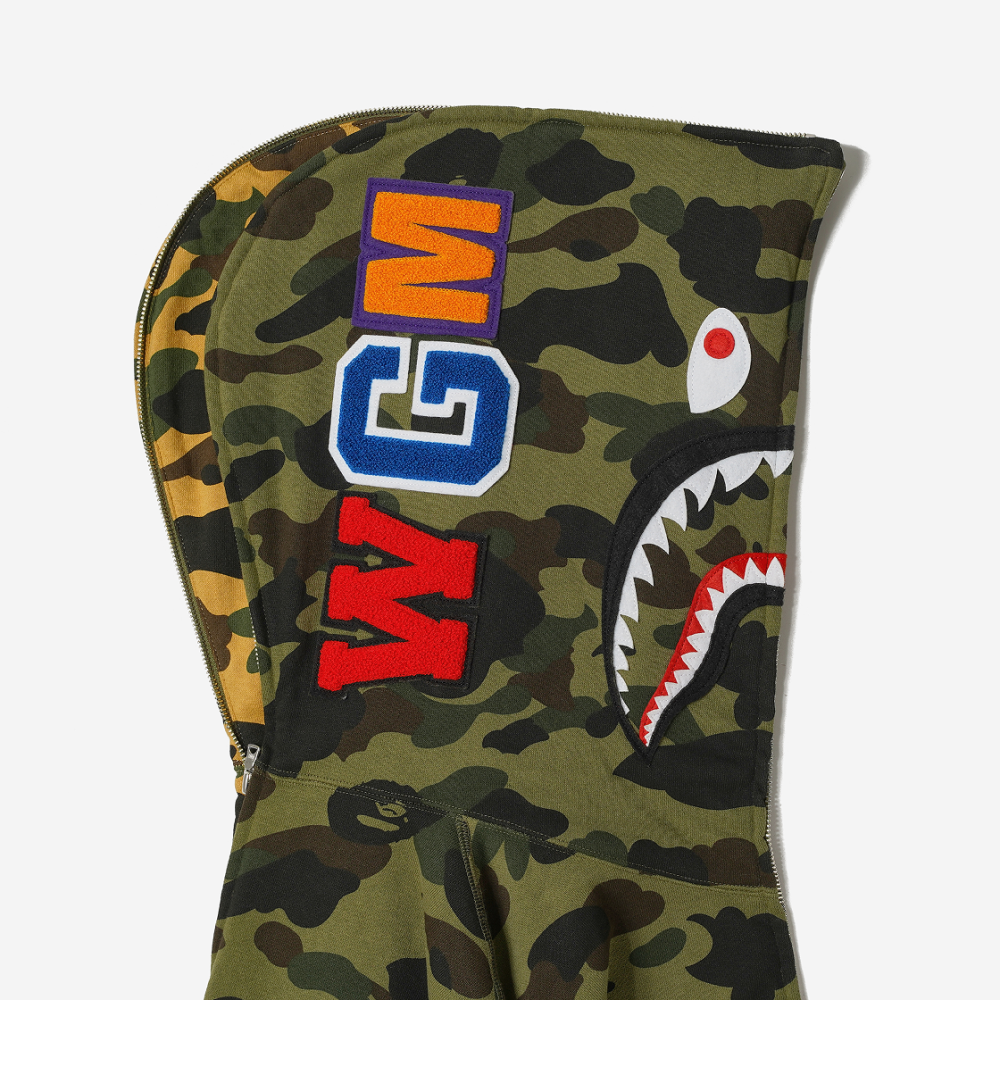 베이프 퍼스트 카모 세퍼레이트 샤크 풀 집 후드 옐로우