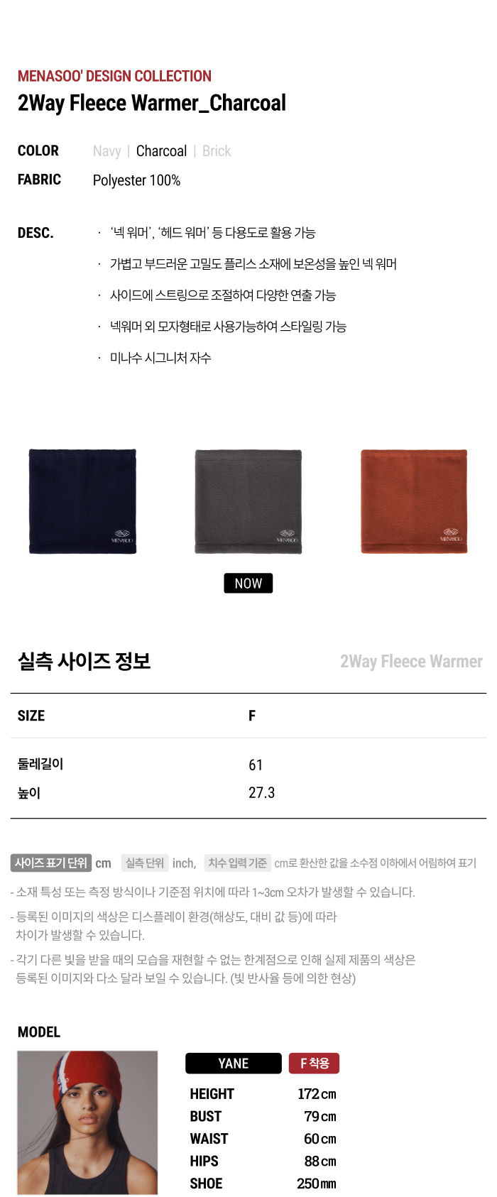 <24 F/W> MENASOO' 2024 Winter Collection. - 이용하시는 기기의 디스플레이마다 색 재현율이 다르므로, 등록된 이미지와 실물 간 색상 차이가 커 보일 수 있습니다. - 상품 단독 촬영 이미지가 비교적 실물과 유사하오나, 실제로 인식되는 색상은 주변 환경 및 광량에 따라 크게 달라 보일 수 있습니다.