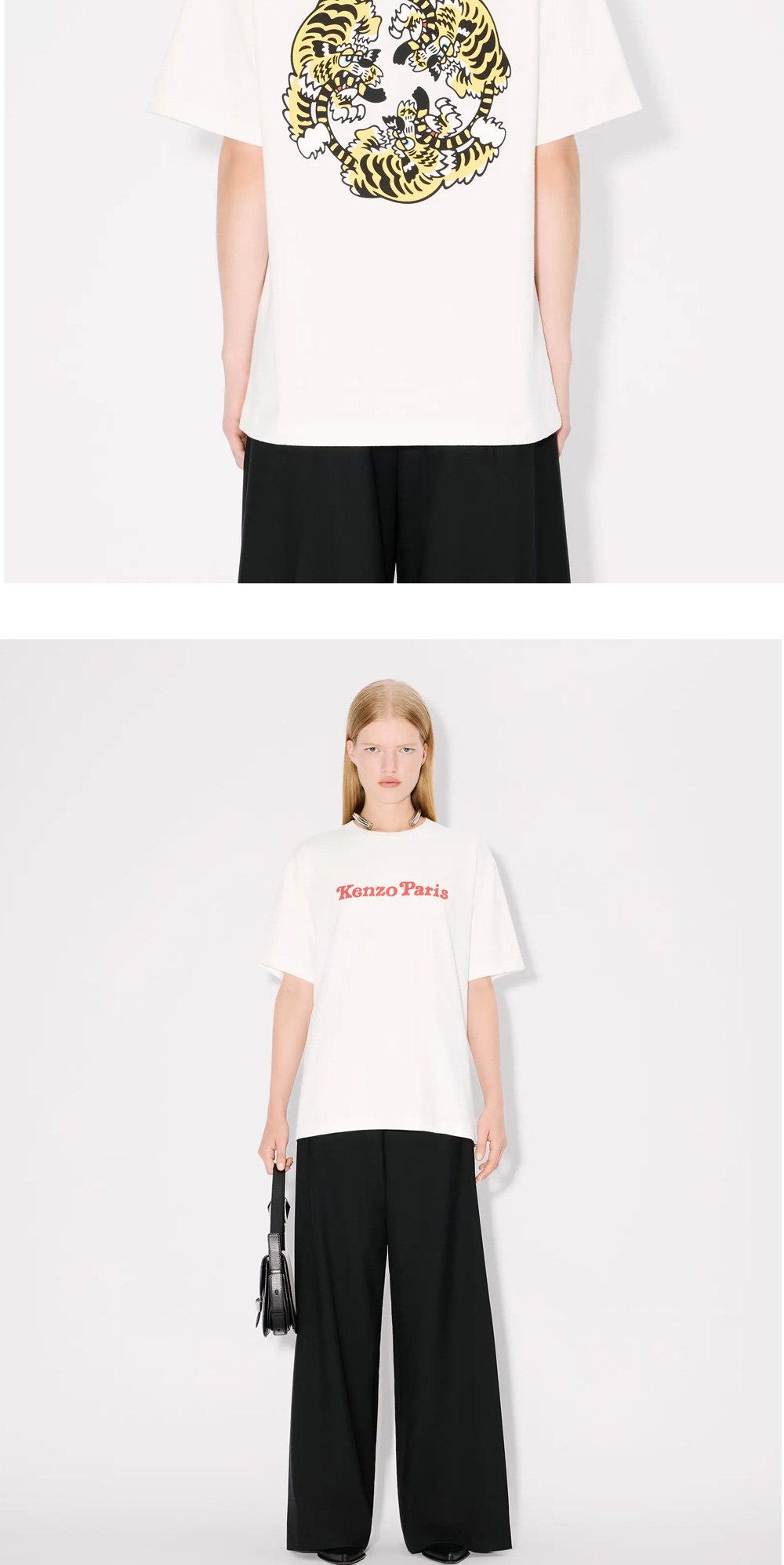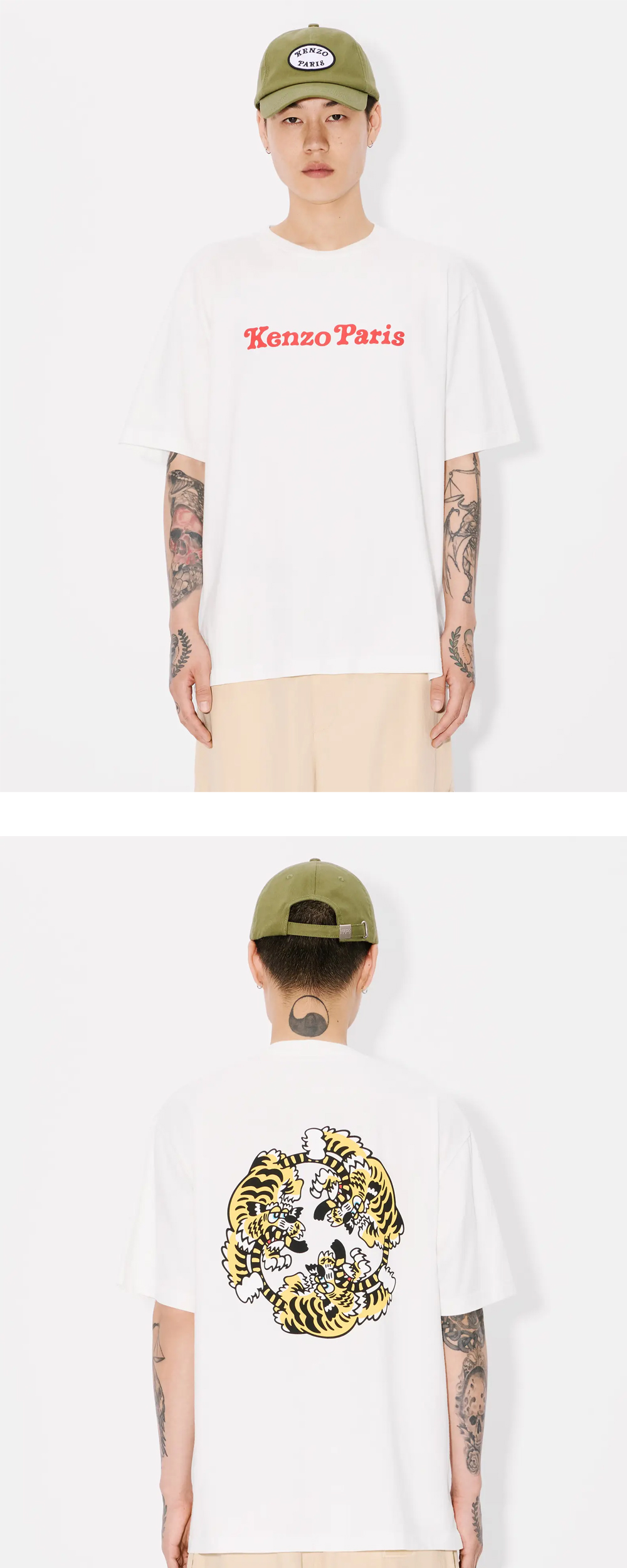 Kenzo x Verdy 의 뒷면 프린팅이 유니크한 오버사이즈 반팔입니다. - 유니섹스 - 부드러운 재질 - 오버사이즈 The female model is 175 cm tall and is wearing size S. The male model is 185 cm tall and is wearing size M.