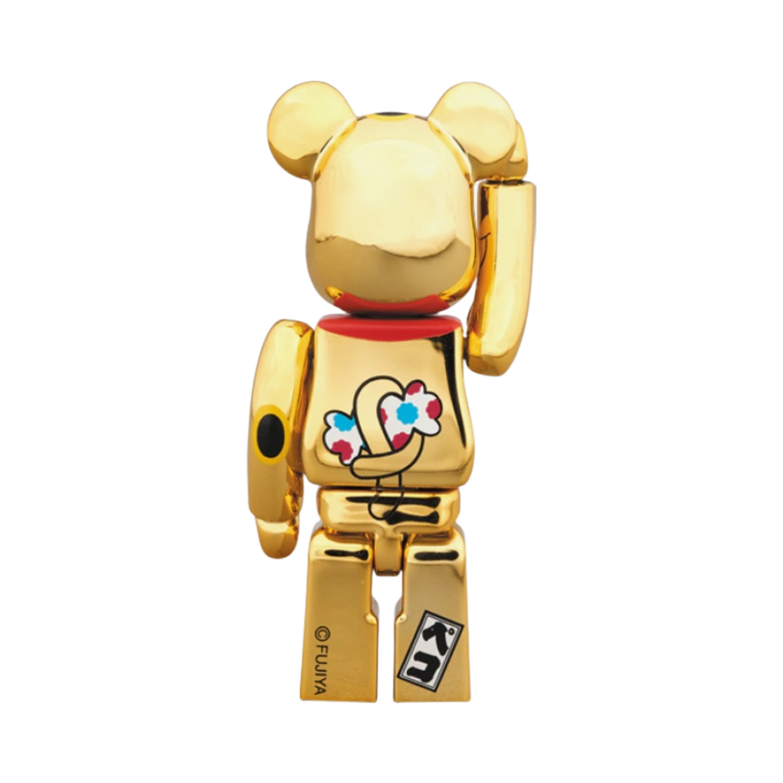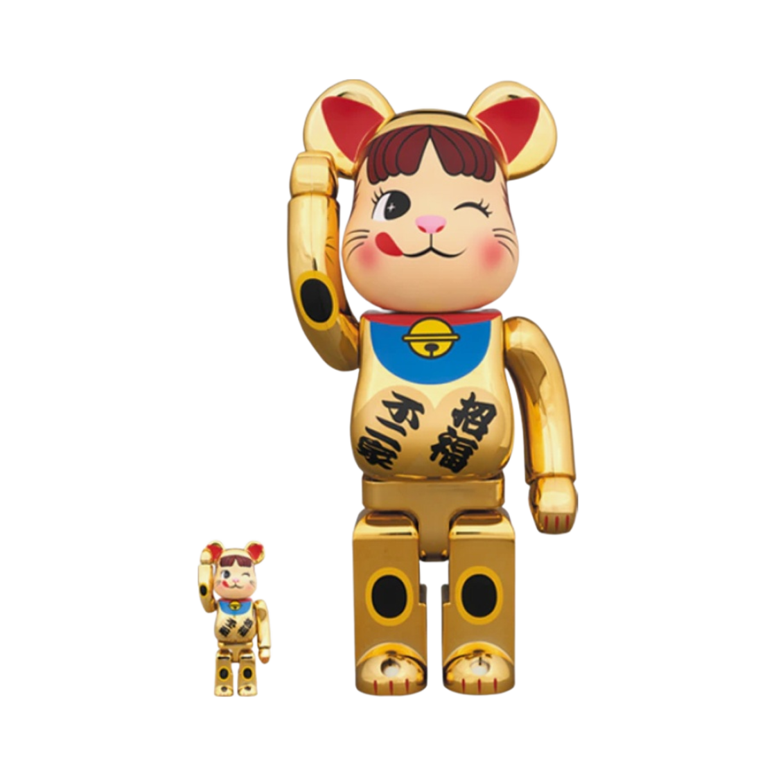 Bearbrick Maneki Neko Peko-Chan 100% & 400% Set Gold Blue