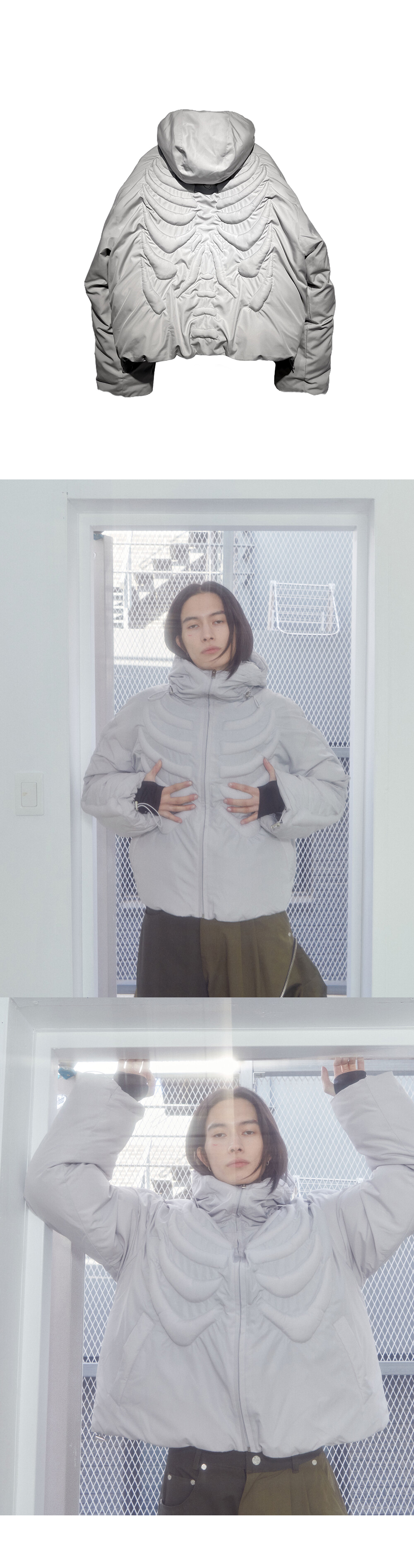 Surgery Bone Embossing Puffer Jacket Light Grey