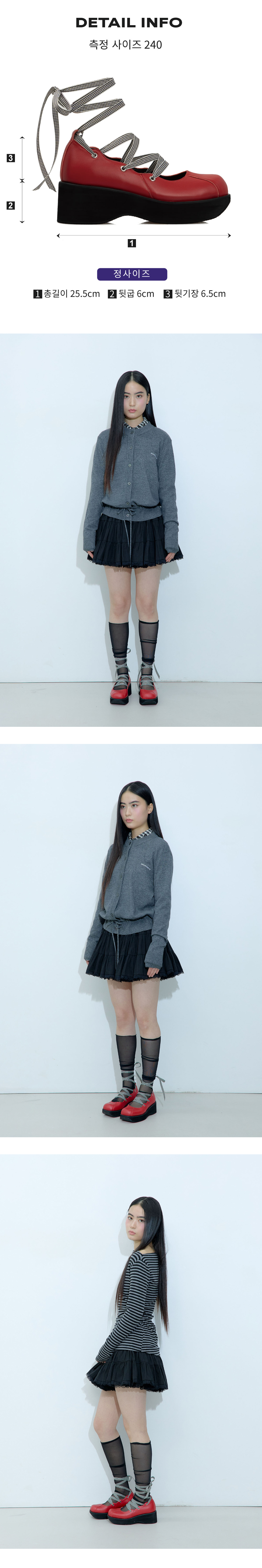*해당 제품은 주문제작 상품이며, 제작기간은 평균 10일가량 소요됩니다.* 엘라는 부드러운 양가죽으로 제작되어 편안한 착화감을 제공합니다. 독특한 스트랩 디자인과 절개 디테일, 옆면의 물결 디테일이 귀여운 매력을 더해줍니다. 내부에는 레이스 러프넥 패치가 부착되어 세심한 디테일을 느낄 수 있으며, 가벼운 통굽으로 안정감 있는 착화감을 선사합니다. Material : Sheep leather 100%