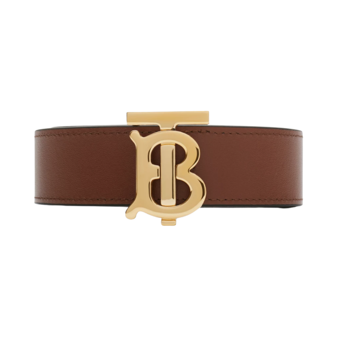 (W) Burberry Reversible Leather TB Belt Black Tan
