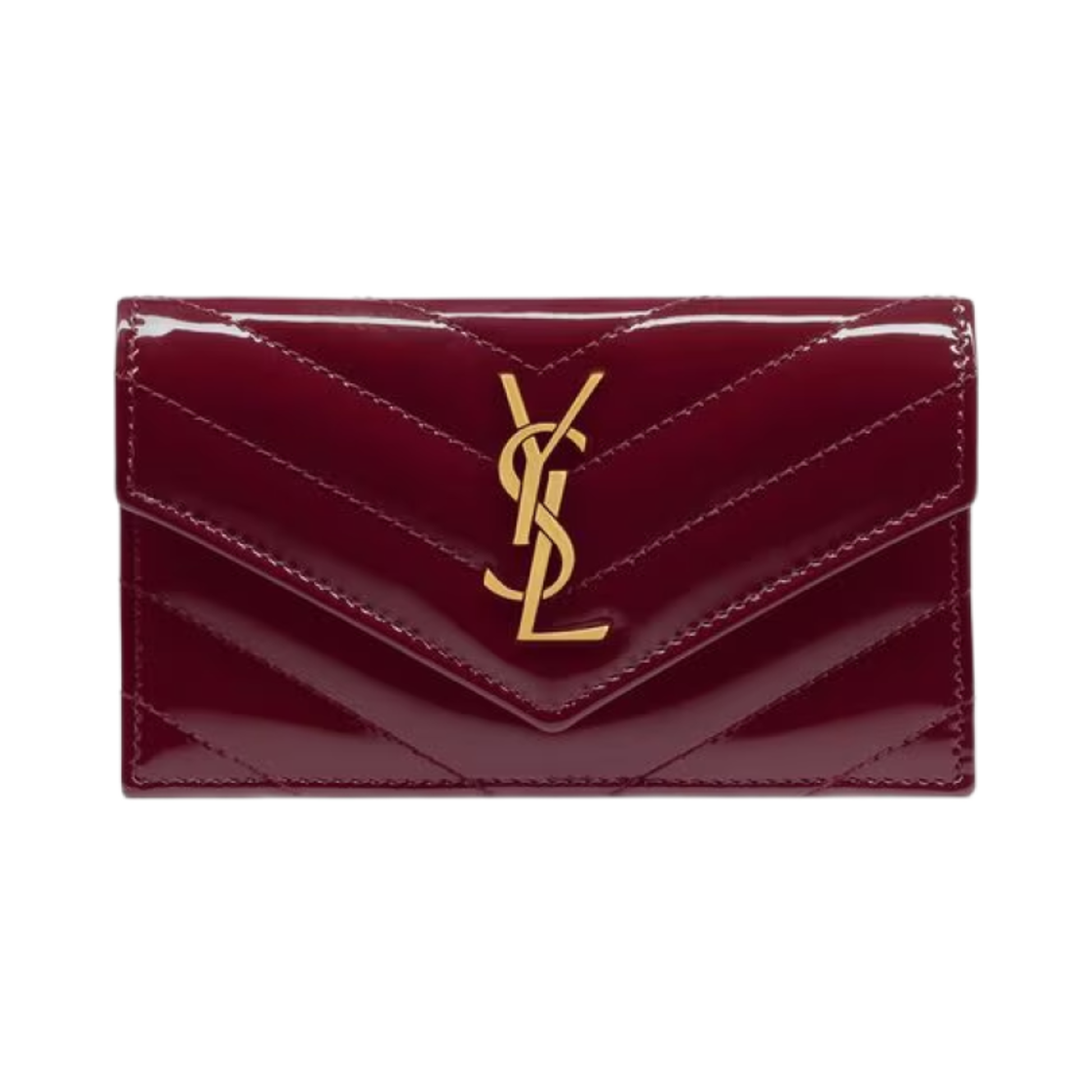 Saint Laurent Cassandre Matelasse Fragments Flap Card Case in Patent Leather Dark Red Wine