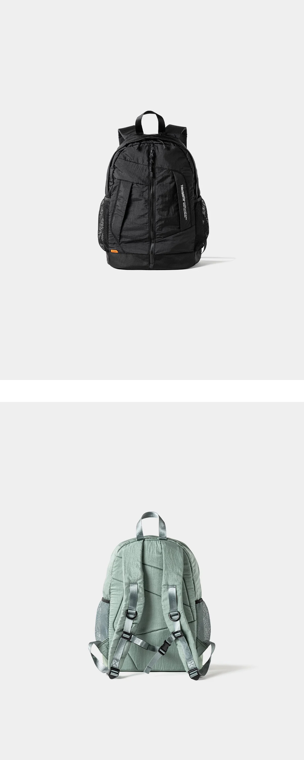 실용성과 편안함 둘 다 잡은 타이트부스 백팩입니다. - 발수 워셔 가공 - 2개의 지퍼 포켓과 양측에 메쉬 포켓 - 등면은 쿠션성이 있는 더블 메쉬 소재 - 숄더 벨트에 체스트 스트랩이 포함되어 안정적인 착용감 제공 - 브랜드 로고 여러 군데에 은은하게 배치
