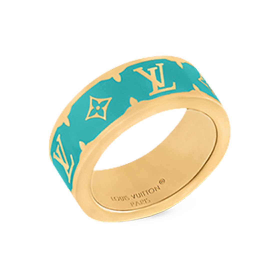 (W) Louis Vuitton Nanogram Enamel Ring Turquoise