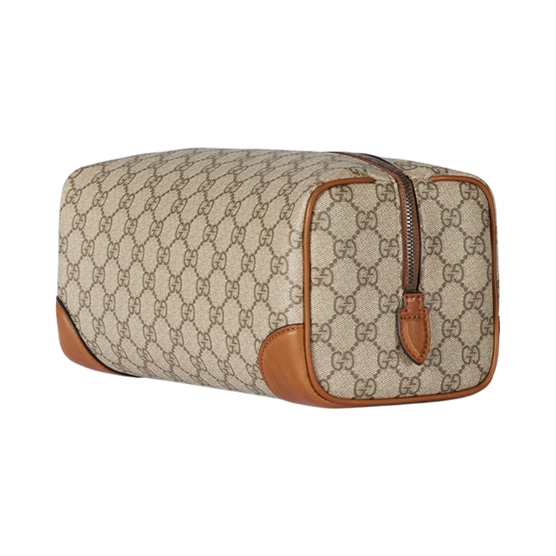 Gucci GG Emblem Medium Toiletry Case Beige Dark Brown