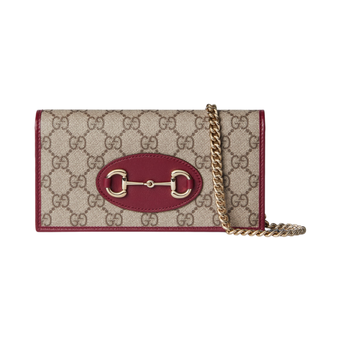 Gucci Horsebit 1955 Wallet with Chain Beige Ancora Red