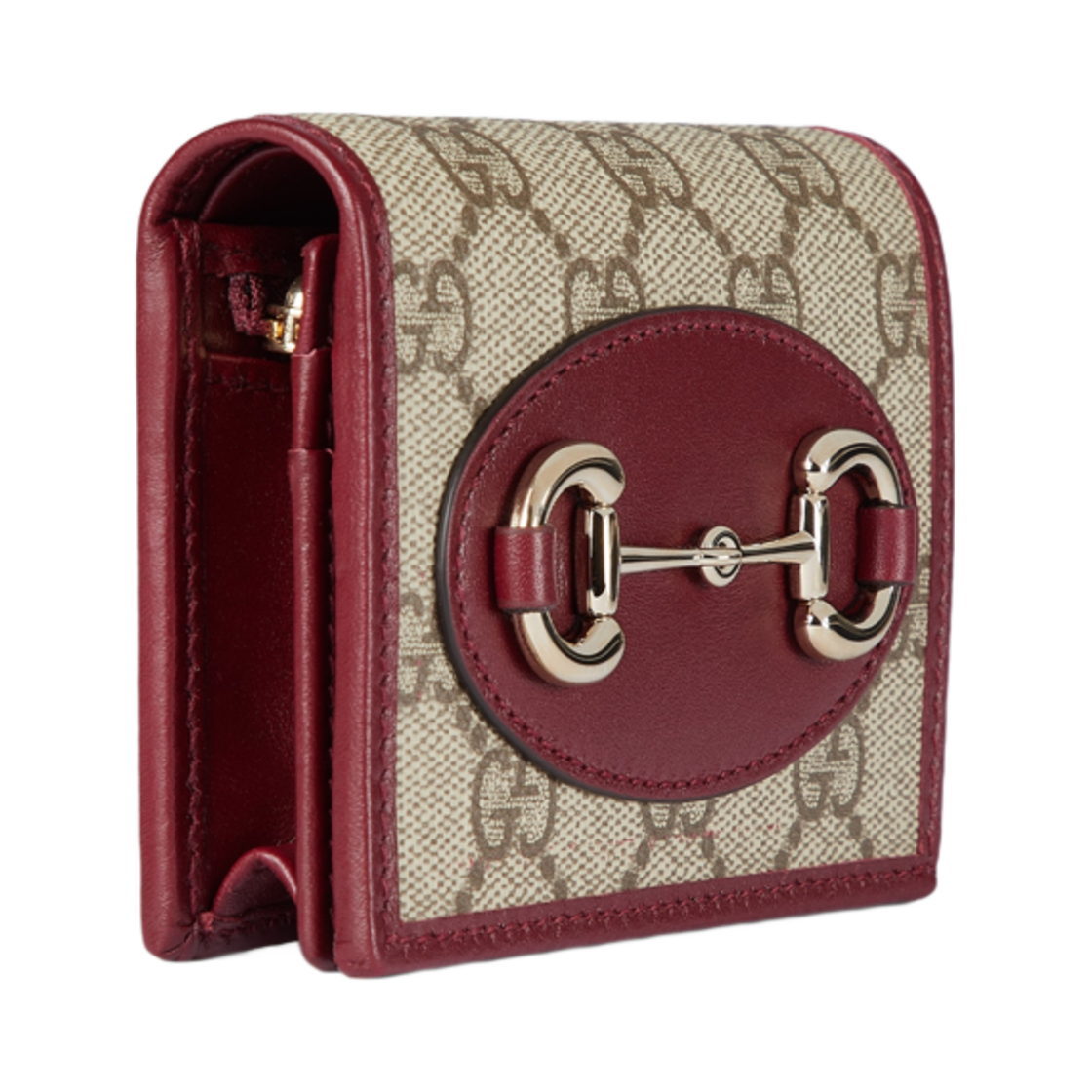 Gucci Horsebit 1955 Card Case Wallet Beige Ancora Red