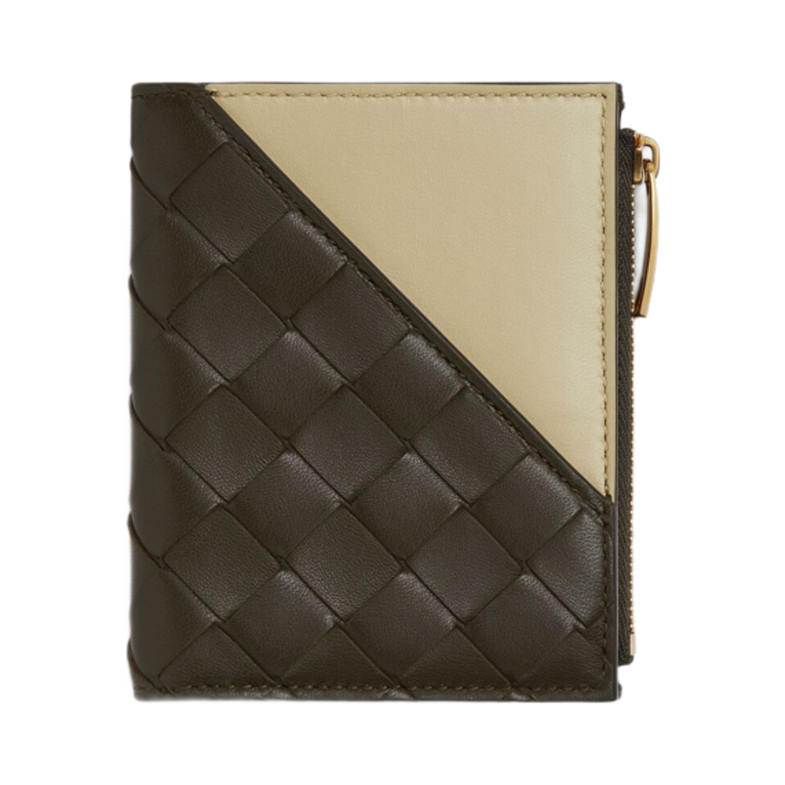 Bottega Veneta Intrecciato Diagonal Small Bi-Fold Wallet Kaki Light Butterscotch