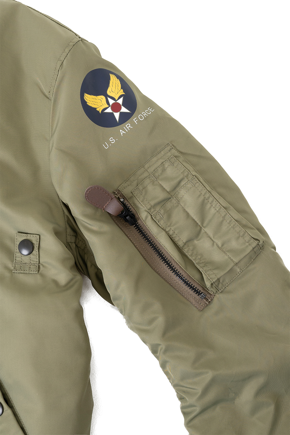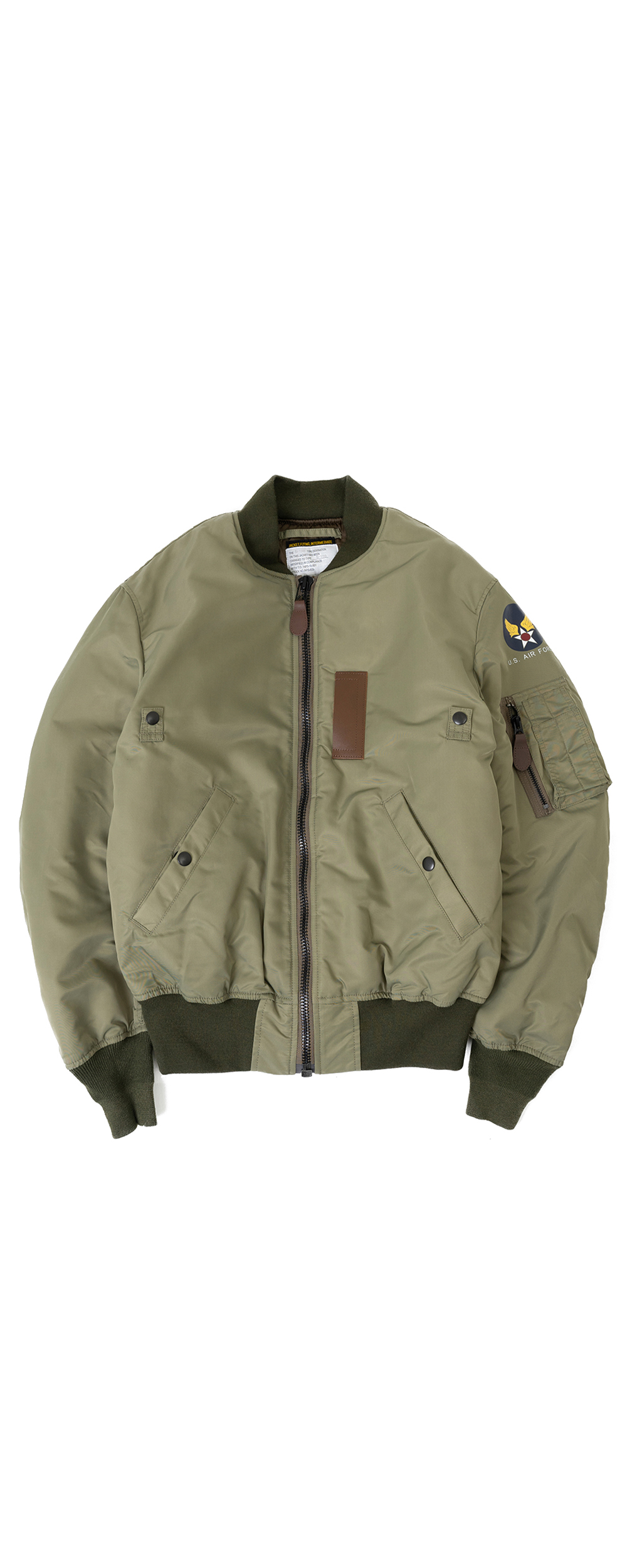 Houston Japan 5004C B-15B Modify Flight Jacket - Olive Drab 미군 최초의 나일론 항공 점퍼인 B-15B Flight Jacket의 무스탕 옷깃에서 니트 리브로 변경된 모델을 재현한 제품입니다. 광택감 있는 헤비 나일론 트윌을 사용하였습니다. * Upper : Nylon 100% * Lining : Polyester 100% * Lib: Acrylic 90% / Wool 10% * Filling : Polyester 100% * 빛에 의한 제품의 색감 차이가 존재 할 수 있습니다. * Made in China
