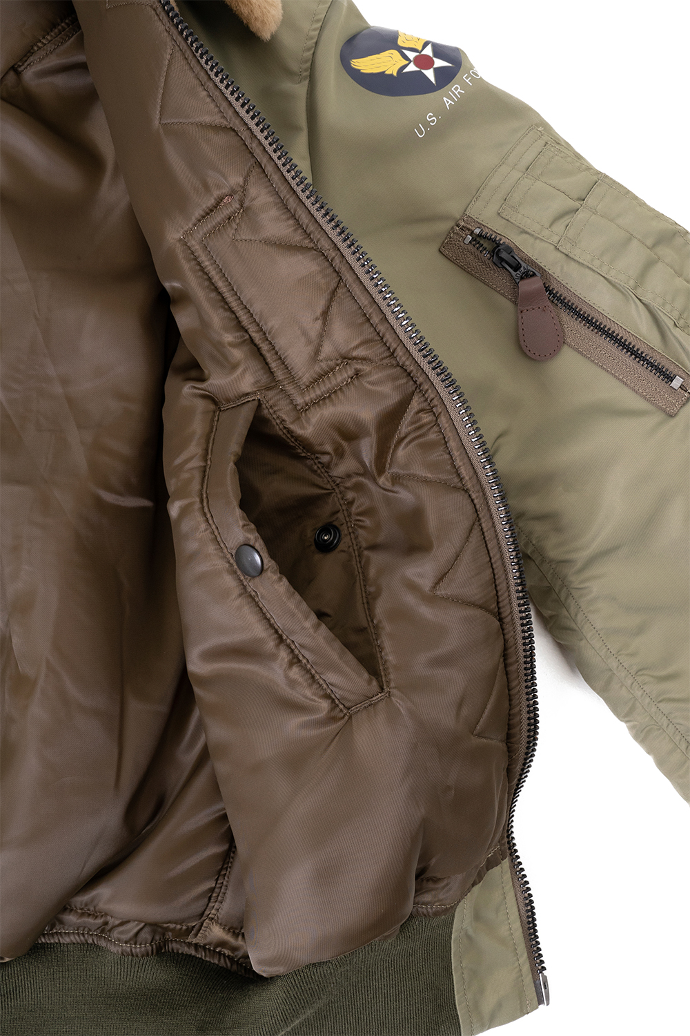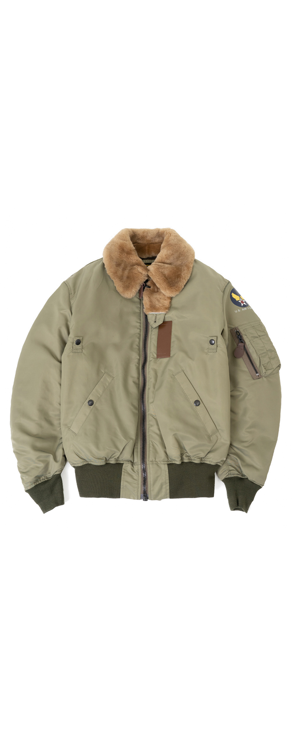 Houston Japan 5001C B-15B Flight Jacket - Olive Drab 미군 최초 나일론 소재의 플라이트 자켓 모델을 재현한 제품입니다. 광택감 있는 헤비 나일론 트윌을 사용하였습니다. 칼라는 무스탕 보아를 채택하여 고급스럽게 제작되었습니다. * Upper : Nylon 100% * Lining : Polyester 100% * Lib: Acrylic 90% / Wool 10% * Filling : Polyester 100% * 빛에 의한 제품의 색감 차이가 존재 할 수 있습니다. * Made in China