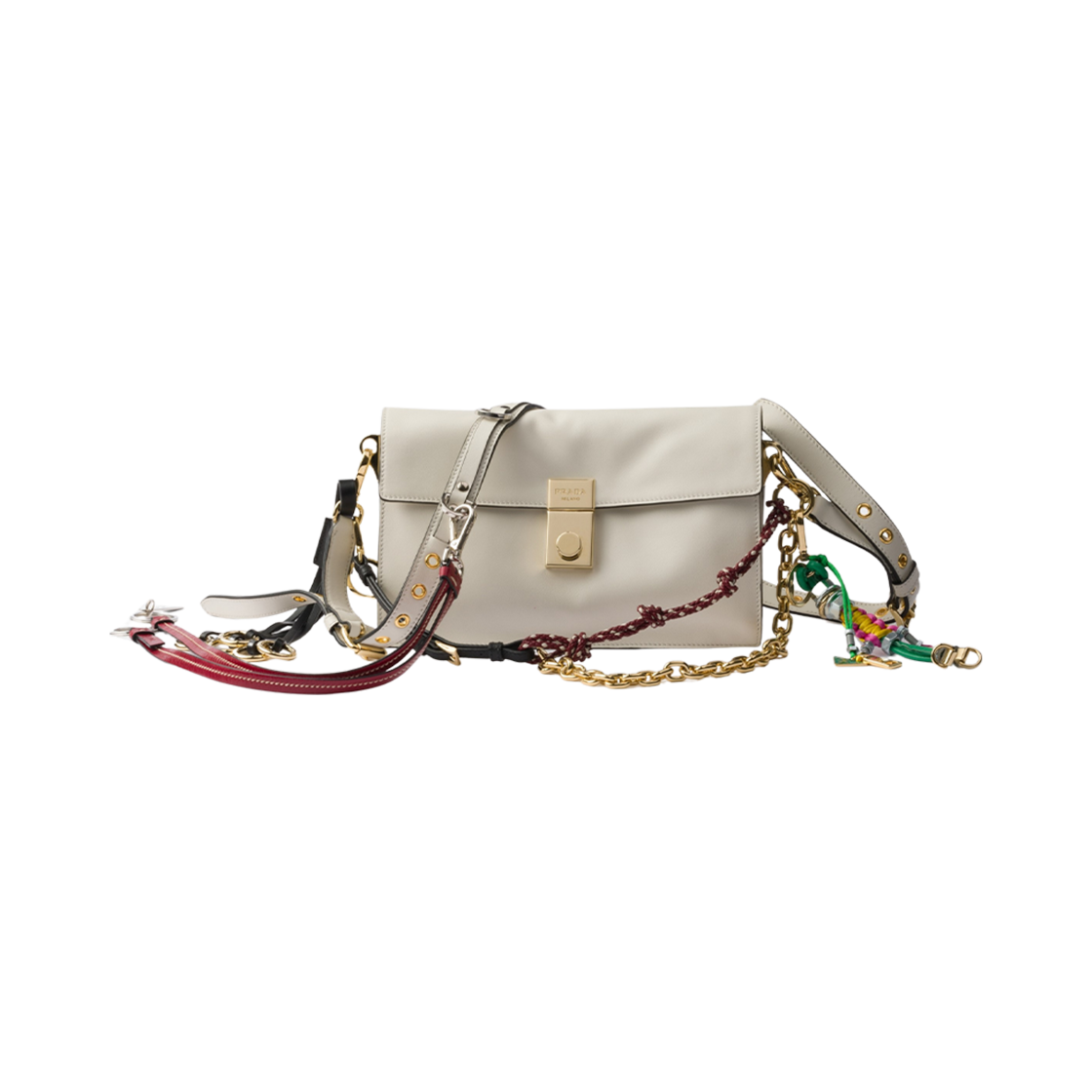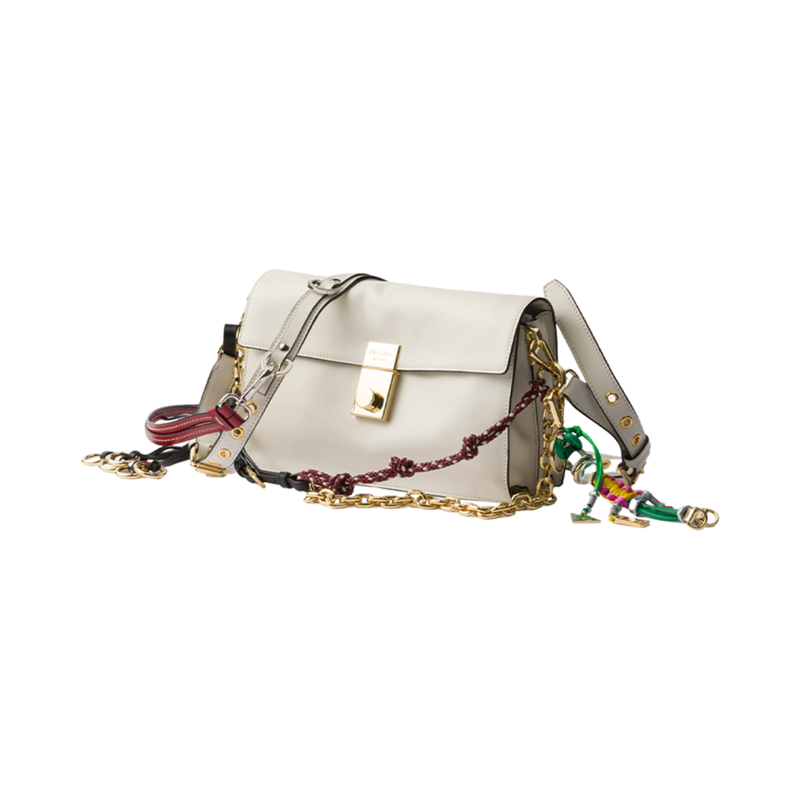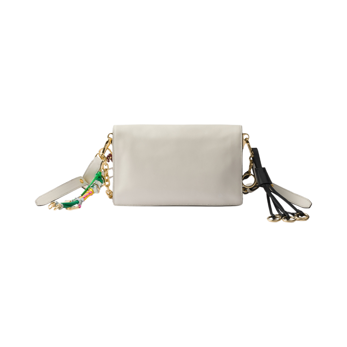 Prada Soft Sound Small Leather Shoulder Bag with Charms White