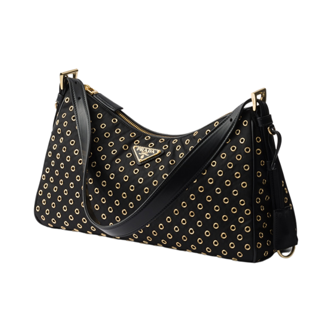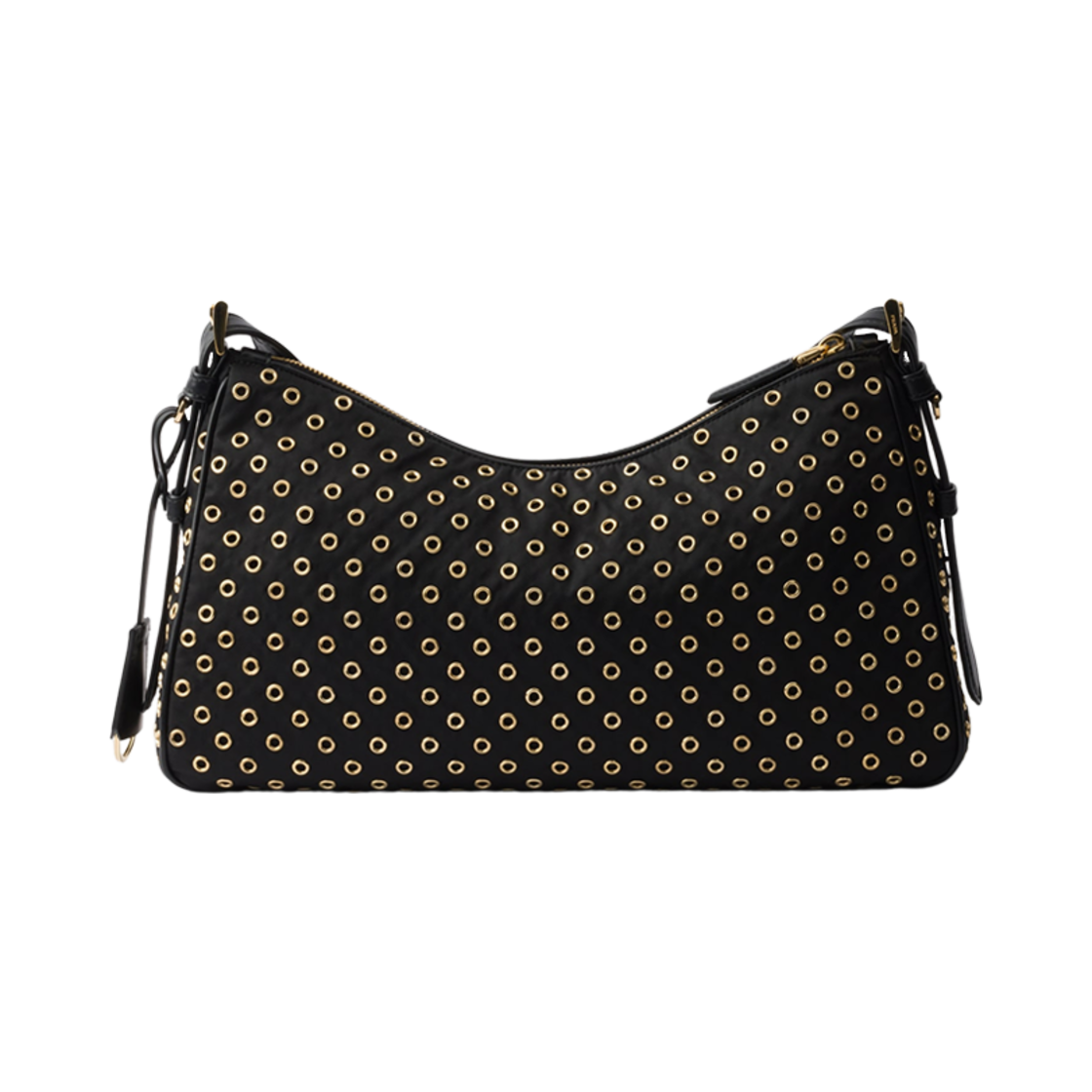Prada Aimee Large Re-Nylon Shoulder Bag with Grommet Detail Black