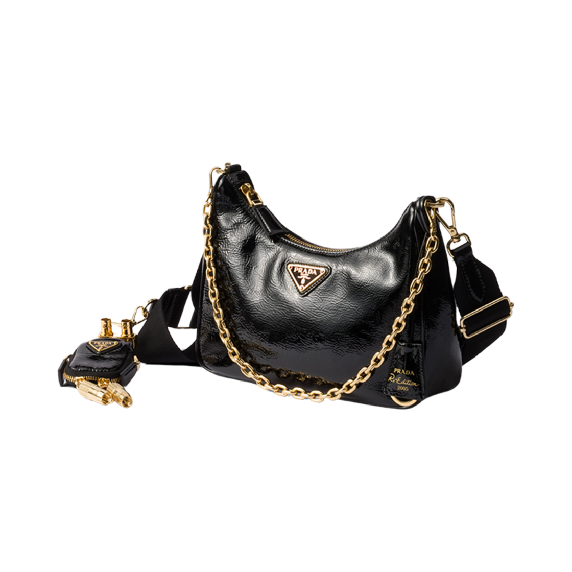 Prada Re-Edition 2005 Naplak Patent Leather Bag with Charm Black