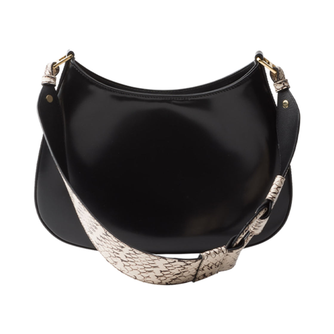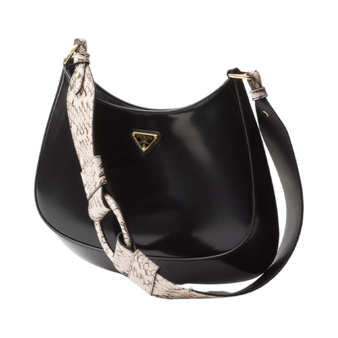 프라다 클레오 에어즈 앤 브러쉬드 레더 숄더백 블랙 스톤 그레이