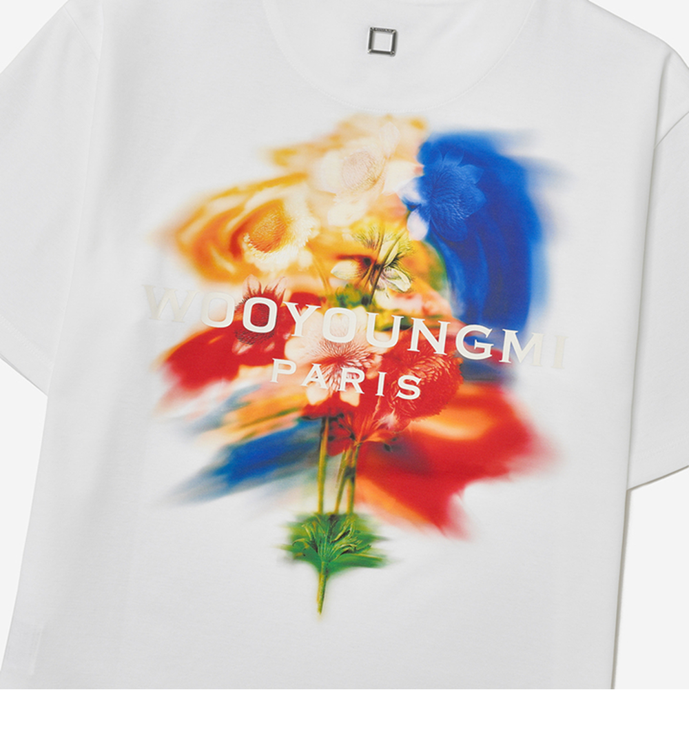 (W) Wooyoungmi Swaying Flower Back Logo T-Shirt White - 24FW