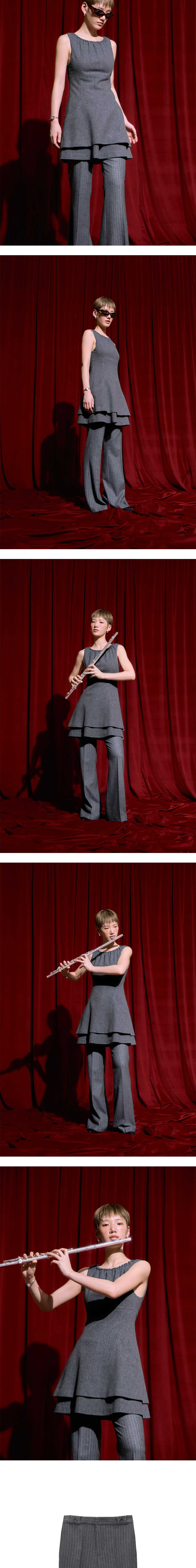 에스티유 우먼스 핀스트라이프 플레어 슬랙스 그레이