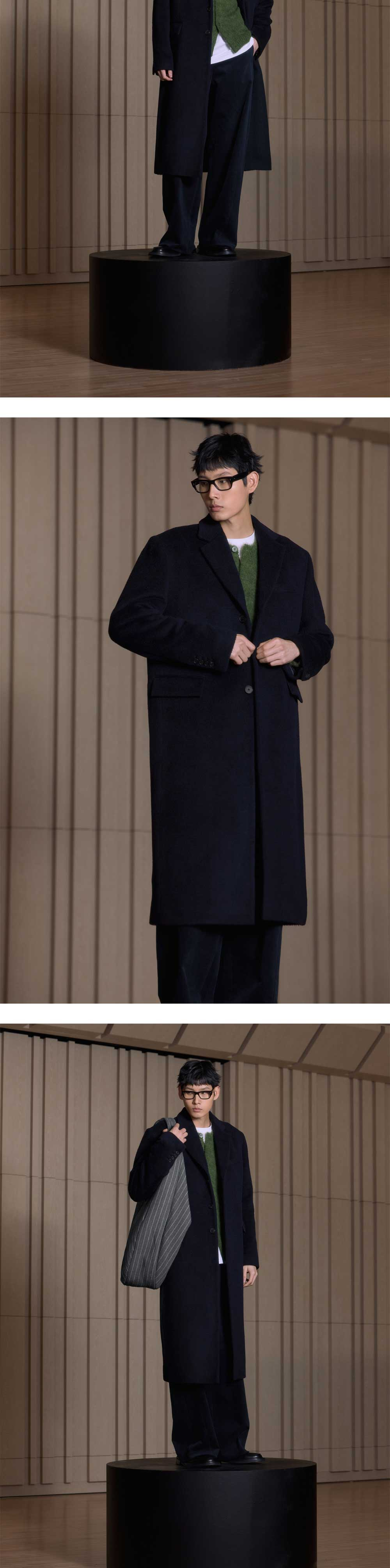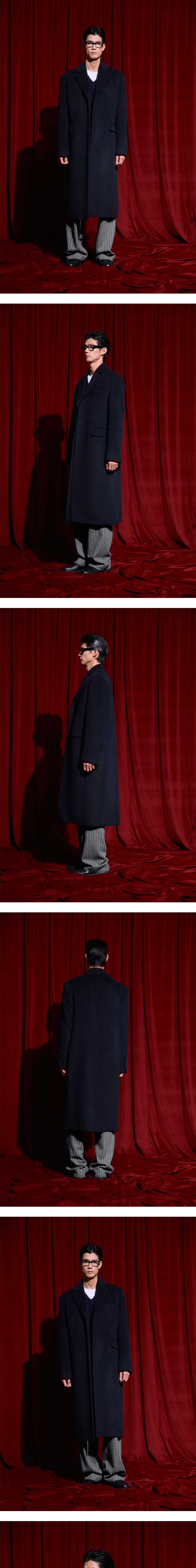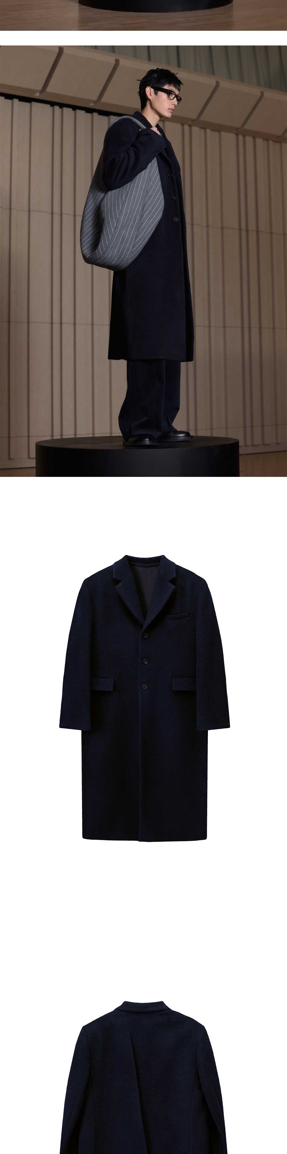 에스티유 백 버튼 싱글 코트 네이비