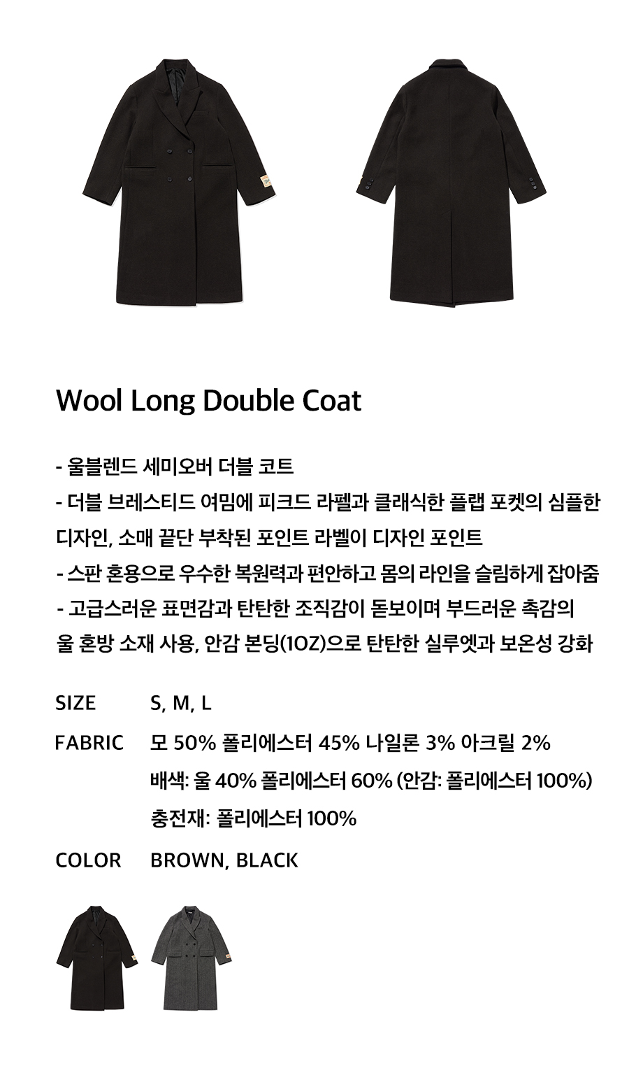 랭글러 울 더블 롱코트 브라운
