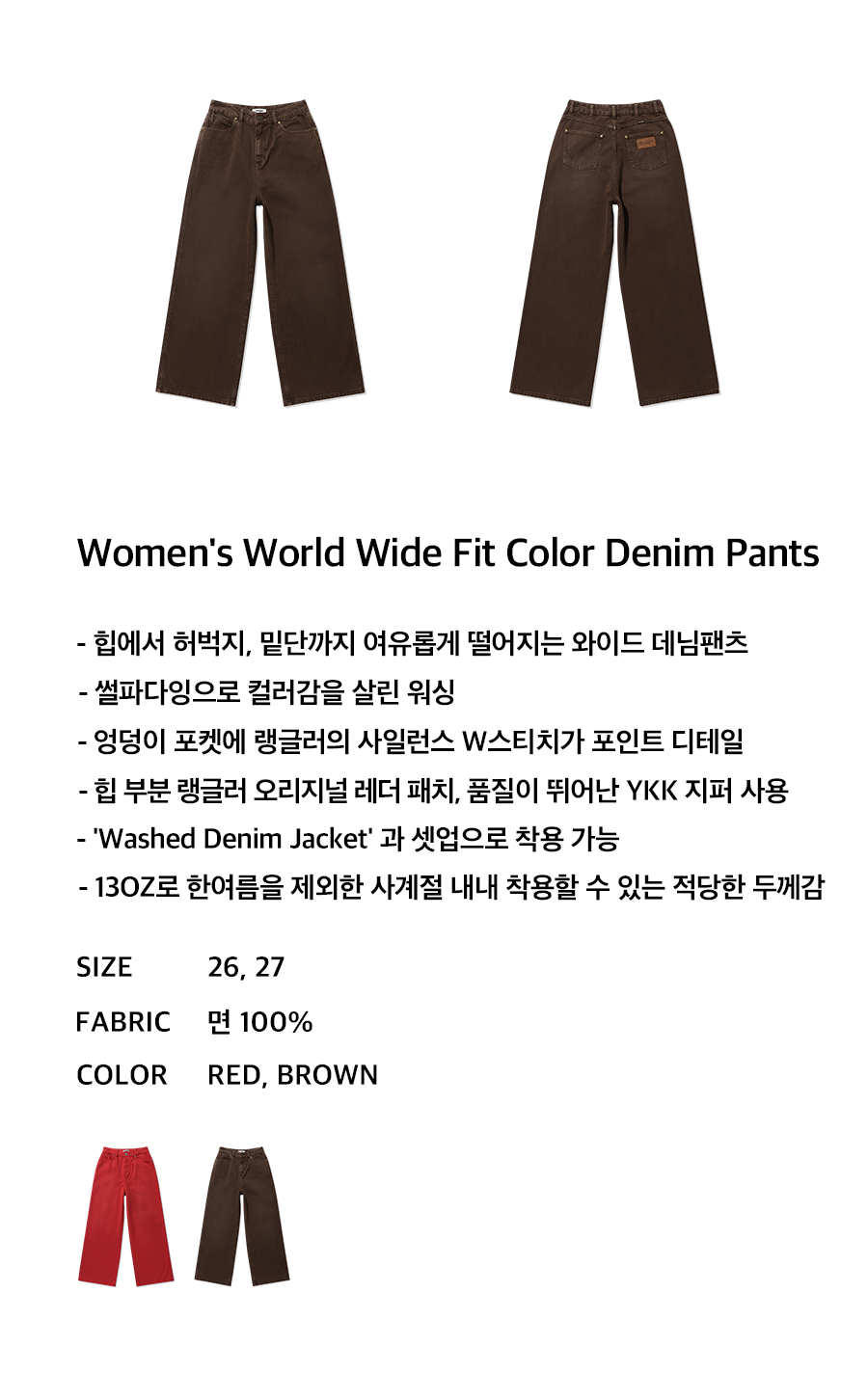 (W) 랭글러 월드와이드핏 컬러 워싱 데님 팬츠 브라운