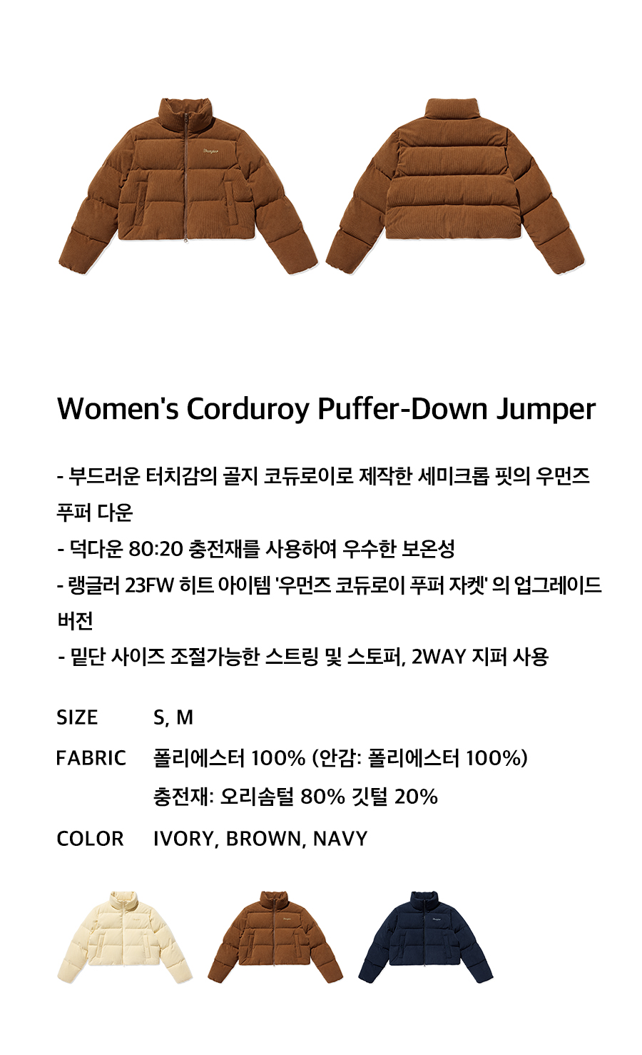랭글러 우먼 코듀로이 크롭 푸퍼 덕 다운 브라운