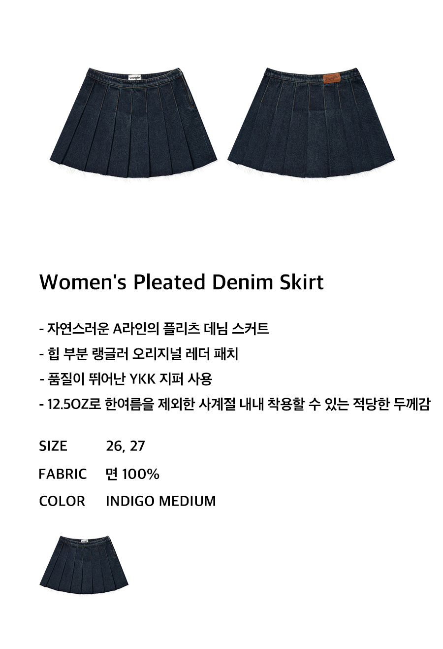 (W) 랭글러 데님 플리츠 스커트 인디고 다크