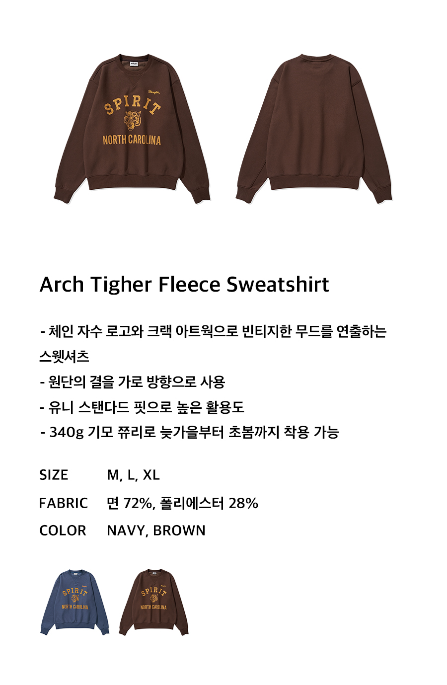 랭글러 아치 타이거 기모 스웻셔츠 브라운