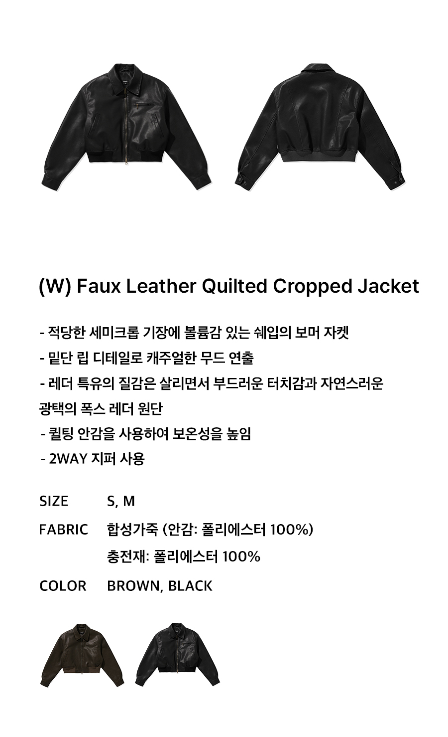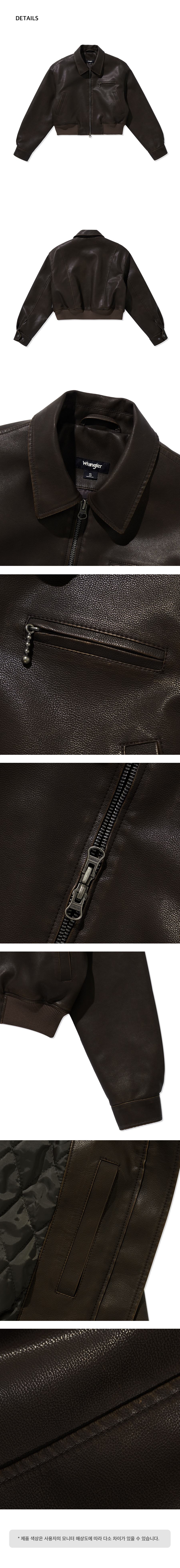 (W) 랭글러 폭스 레더 퀼티드 크롭 자켓 블랙