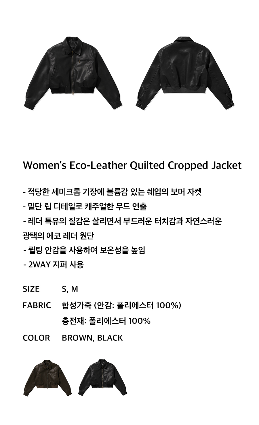 (W) 랭글러 폭스 레더 퀼티드 크롭 자켓 브라운