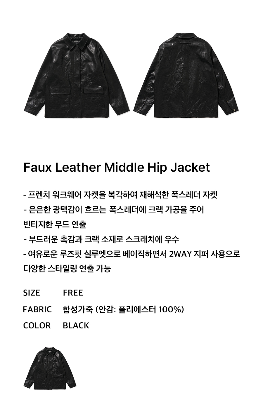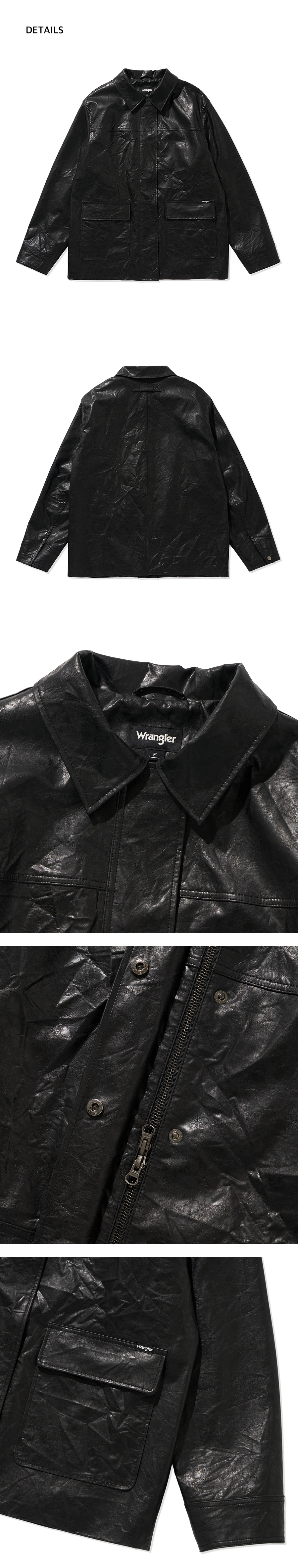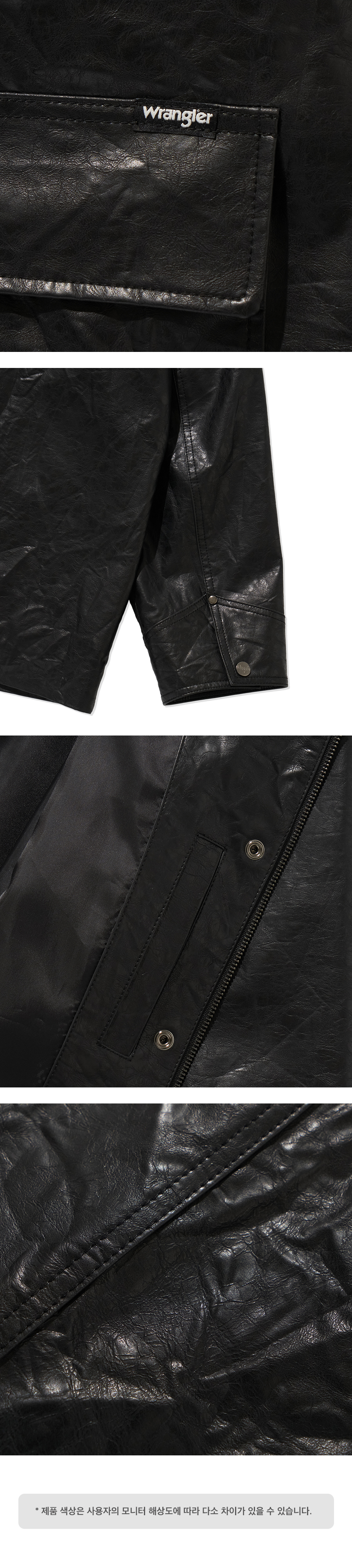 랭글러 폭스 레더 미들 힙 자켓 블랙