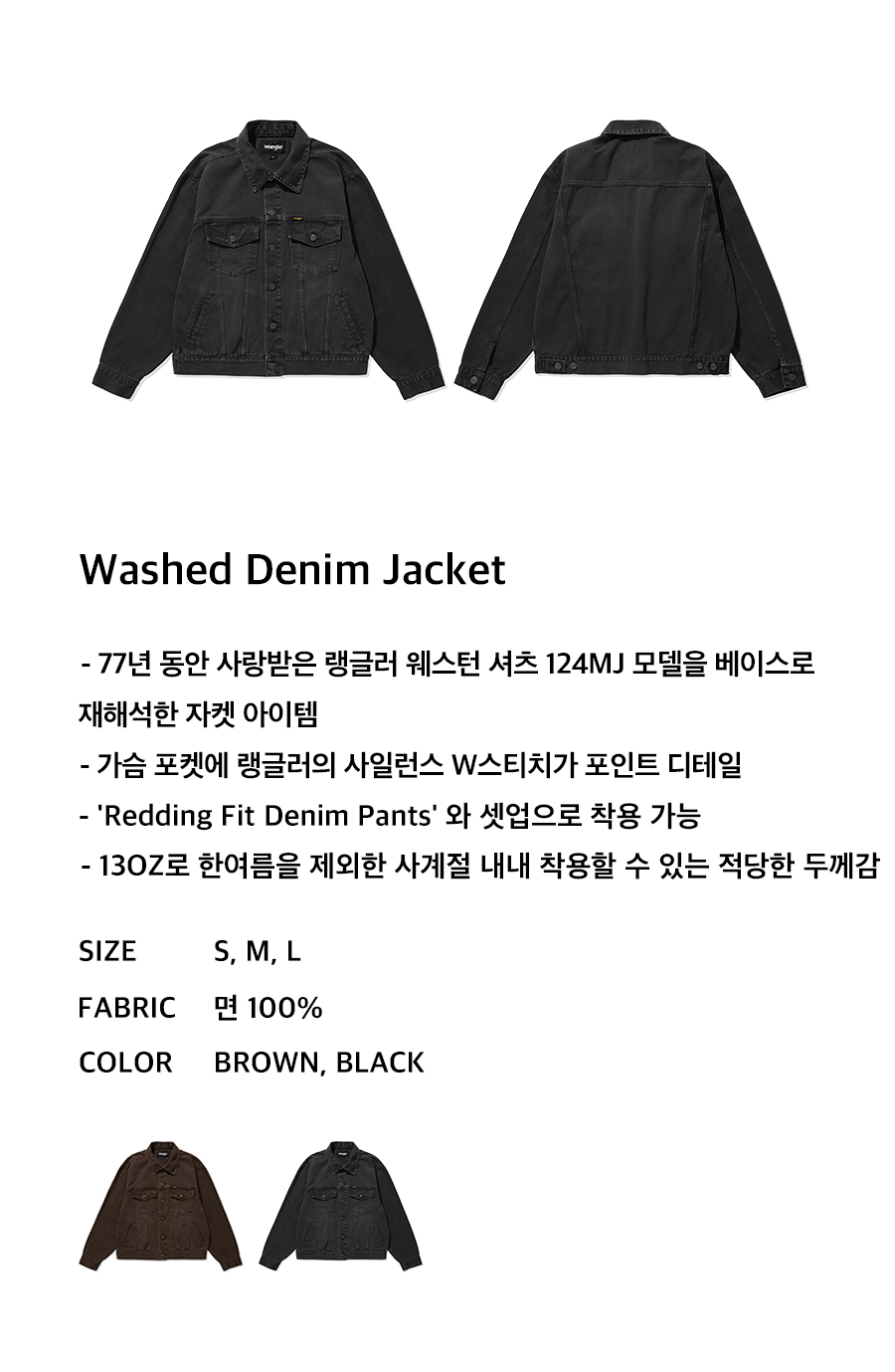 랭글러 스탠다드 워시드 데님자켓 블랙
