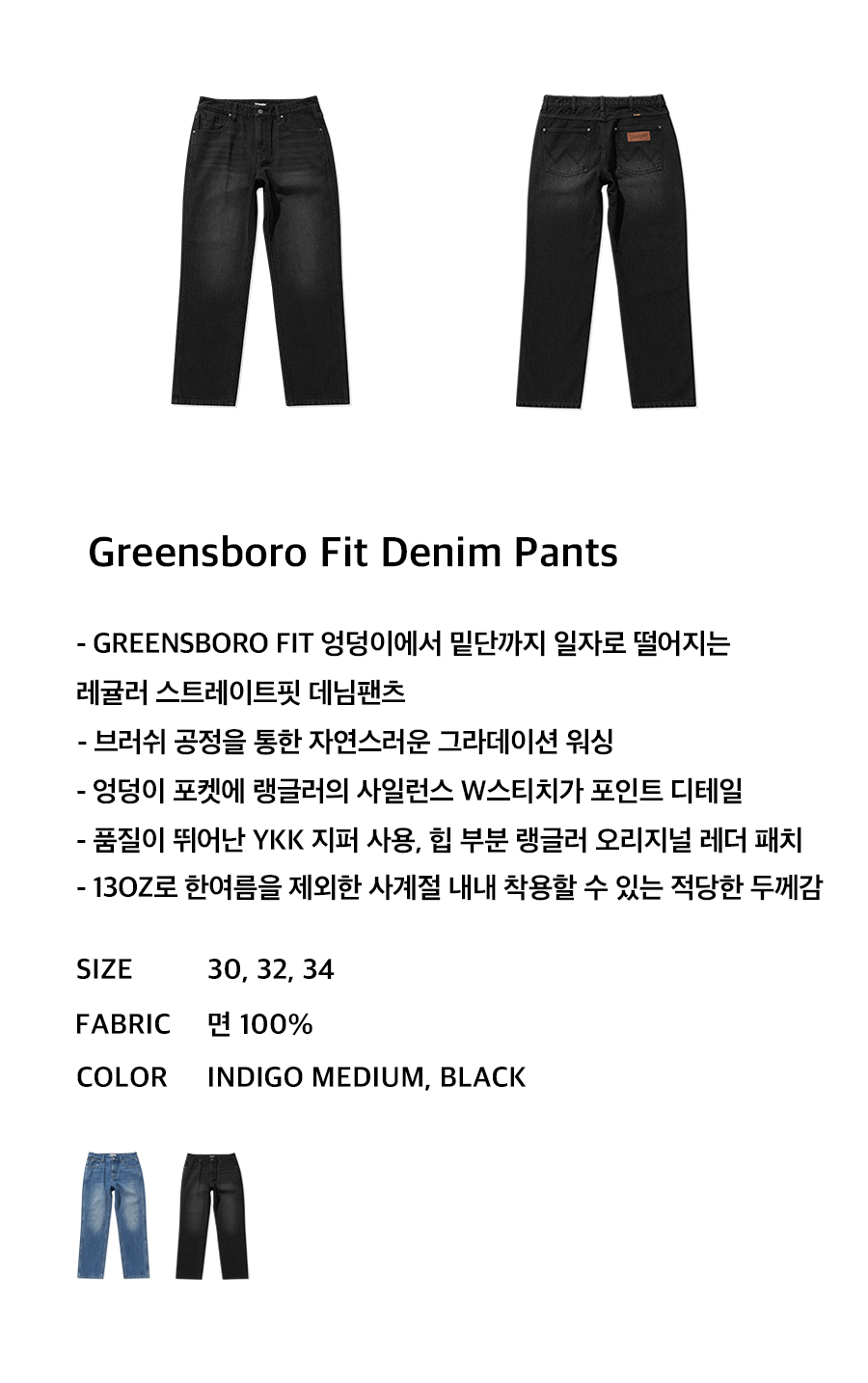 랭글러 그린스보로핏 워싱 데님 팬츠 블랙