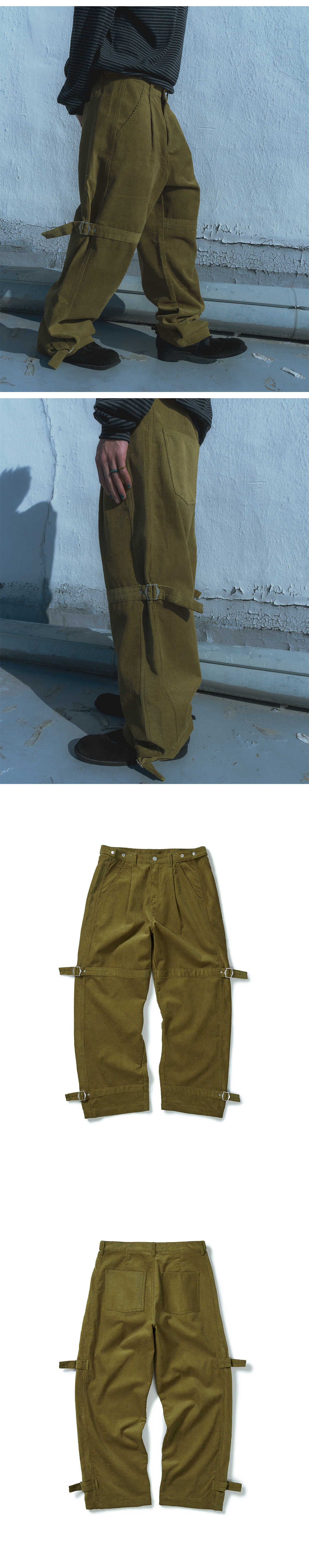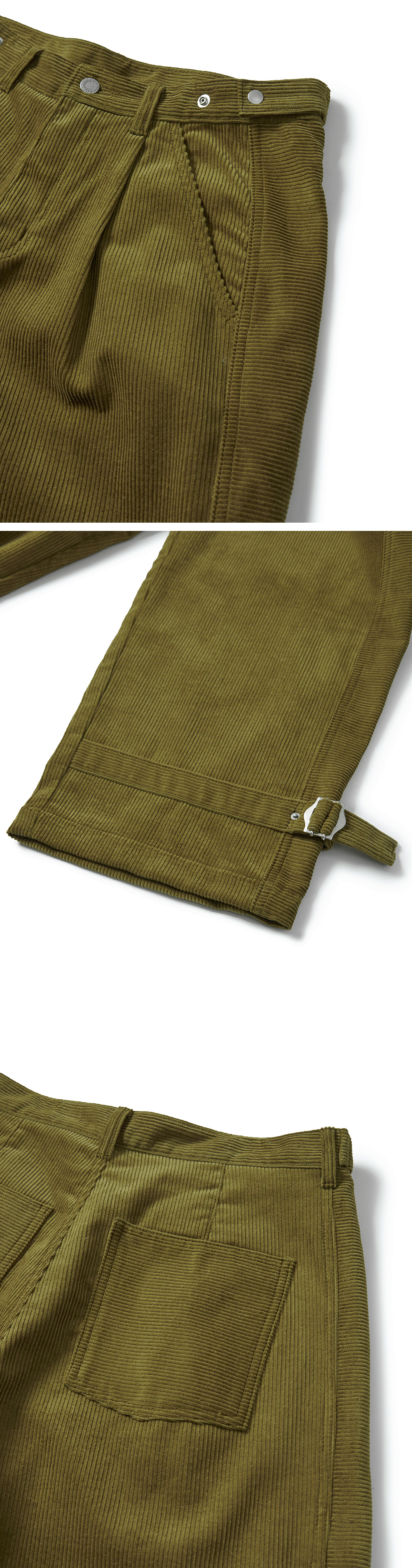 카락터 원 턱 스트랩 코듀로이 팬츠 올리브