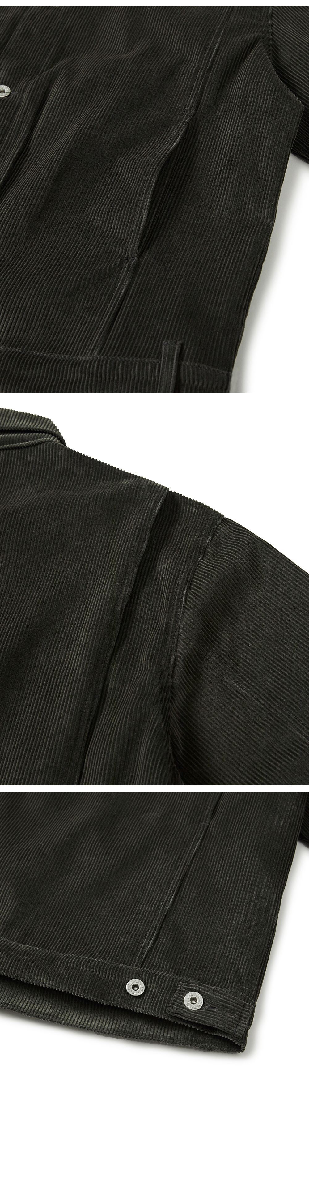 Product Info. - 8W 조직의 코튼 100% 코듀로이 원단 - 여유 있는 실루엣의 빈티지 트러커 자켓 - 패턴 변형을 활용한 구조적인 절개 포켓 디자인 - 후면 절개 액션 플리츠 디테일 - 양 사이드 밑단 사이즈 조절 가능한 버튼 어드저스터 디테일 - 양 소매단 사이즈 조절 가능한 버튼 어드저스터 디테일 - ykk 리벳, ykk 택버튼