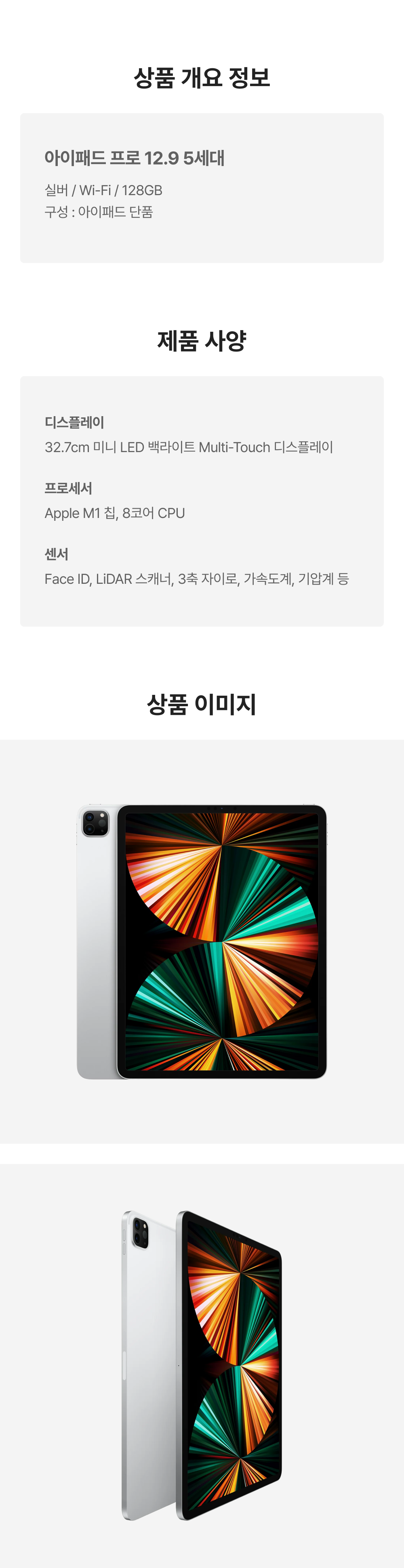 [A등급] 리퍼비시 아이패드 프로 12.9 5세대 wifi Apple M1 128기가 실버