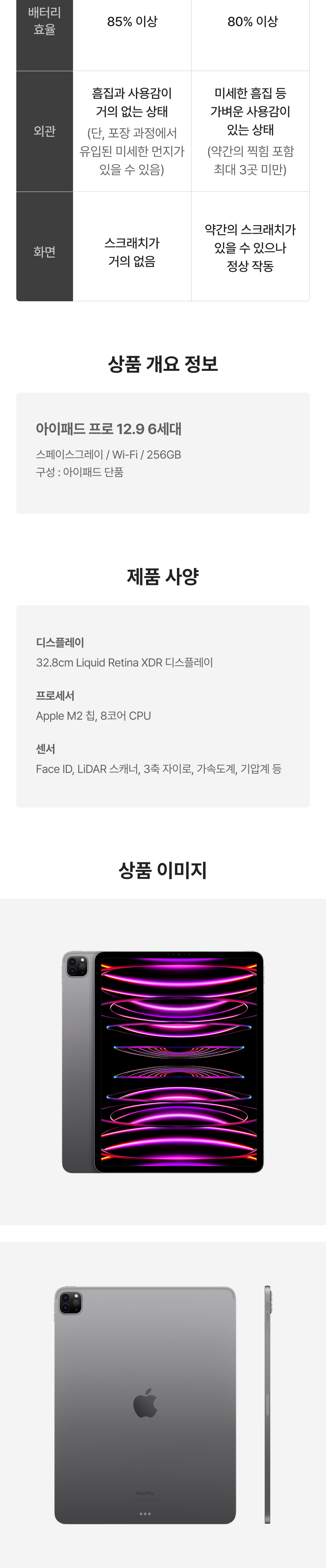 [S등급] 리퍼비시 아이패드 프로 12.9 6세대 wifi Apple M2 256기가 스페이스그레이